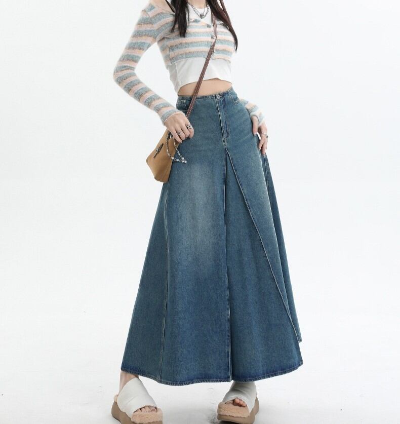 大人の女性にぴったりな、シンプルでおしゃれなデニムスカートです。このロング丈のスカートは、ハイウエストデザインとAラインシルエットが特徴で、スタイルを美しく引き立てます。通年使用できるデニム素材を使用しており、春夏秋冬のさまざまなシーンに最適です!