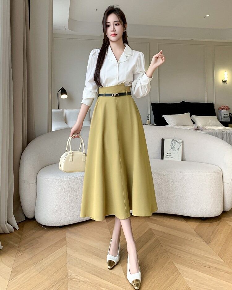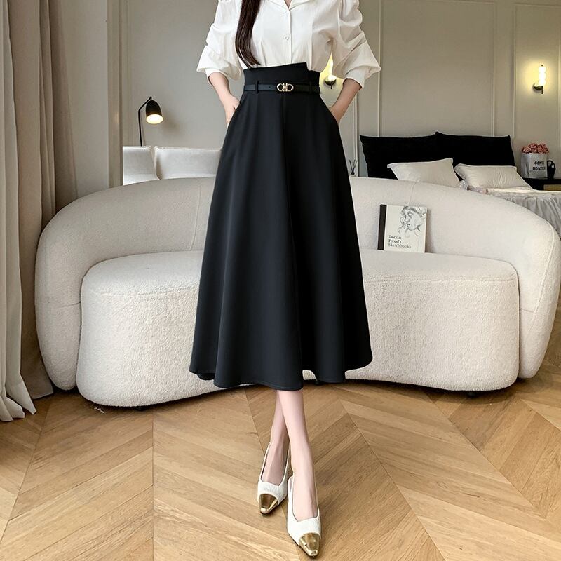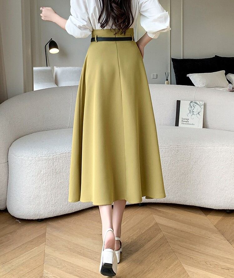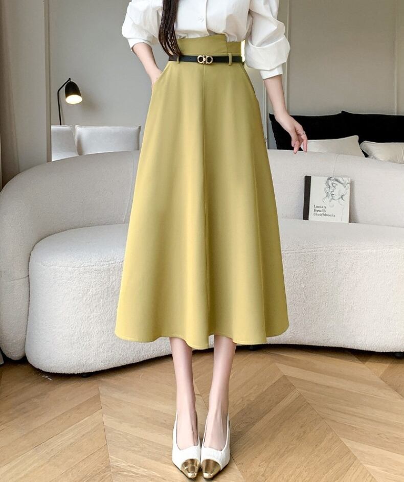 ロングスカート レディース スカート フレアスカート ハイウエスト スカート Aラインスカート ミモレ丈 ふんわり ミモレ丈スカート ベルト ポケット きれいめ 大人 上品 おしゃれ エレガント フォーマル 春 夏 秋 デート お出かけ 休日 旅行 普段使い 脚長 定番 送料無料 S M L XL ブラック イエロー