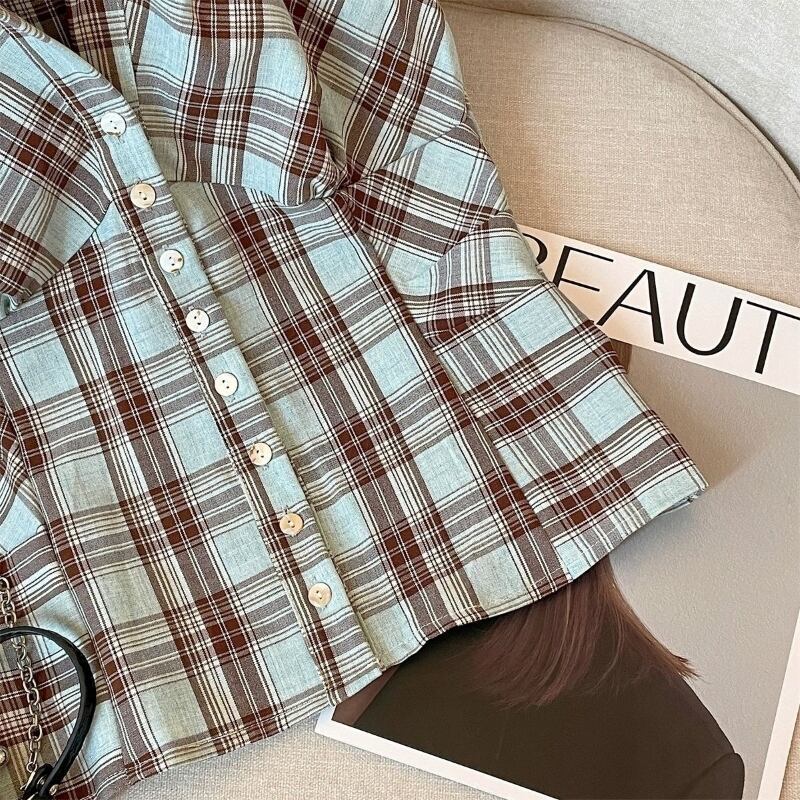 このブラウスは、涼しげなノースリーブとエレガントなⅤネックが魅力。柔らかな素材感が心地よく、デートやお出かけ、休日のリラックスした時間にも適しています。また、存在感あるチェック柄がアクセントとなり、普段使いからイベントまで幅広く活躍します。