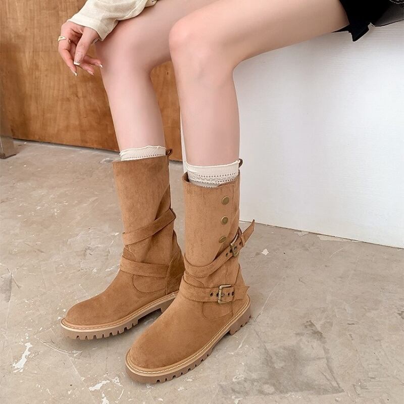 ブーツ レディースブーツ マーケティングブーツ 厚底ブーツ スエード ラウンドトゥ ミドルブーツ 3.5cmヒール 厚底 歩きやすい 履きやすい きれいめ 大人 おしゃれ 大人っぽい 存在感 春 夏 秋 デート お出かけ 休日 旅行 普段使い 定番 送料無料 22.5cm 23.0cm 23.5cm 24.0cm 24.5cm 25.0cm ブラウン カーキ