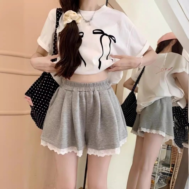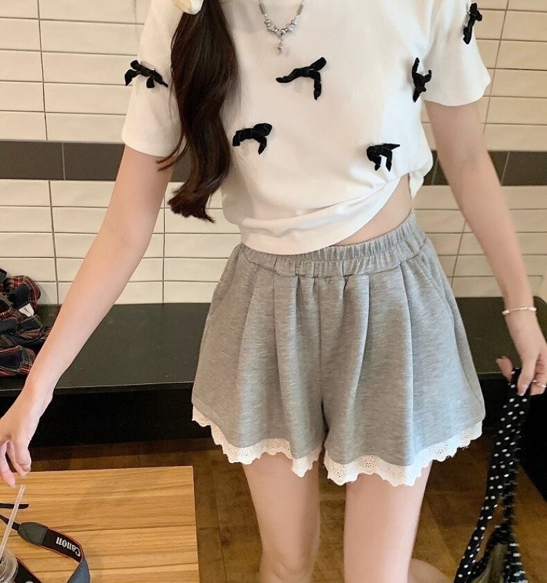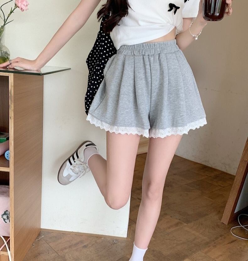 ショートパンツ レディース ハーフパンツ 短パン スウェットショートパンツ ルームパンツ 部屋着 ショート丈 レース ハイウエスト ウエストゴム 伸縮性 シンプル カジュアル 大人 おしゃれ 大人可愛い 大人女子 とろみ感 無地 春 夏 お出かけ 休日 普段使い 韓国系 スタイル 美脚 脚長 定番 送料無料 S M L XL ブラック グレー