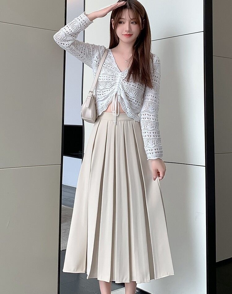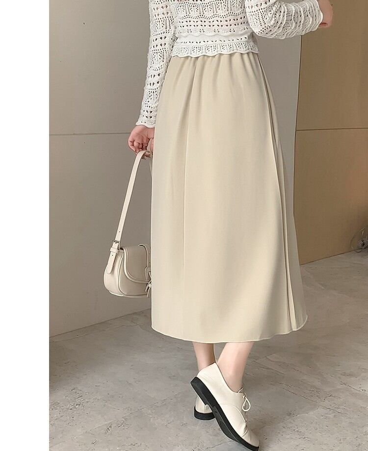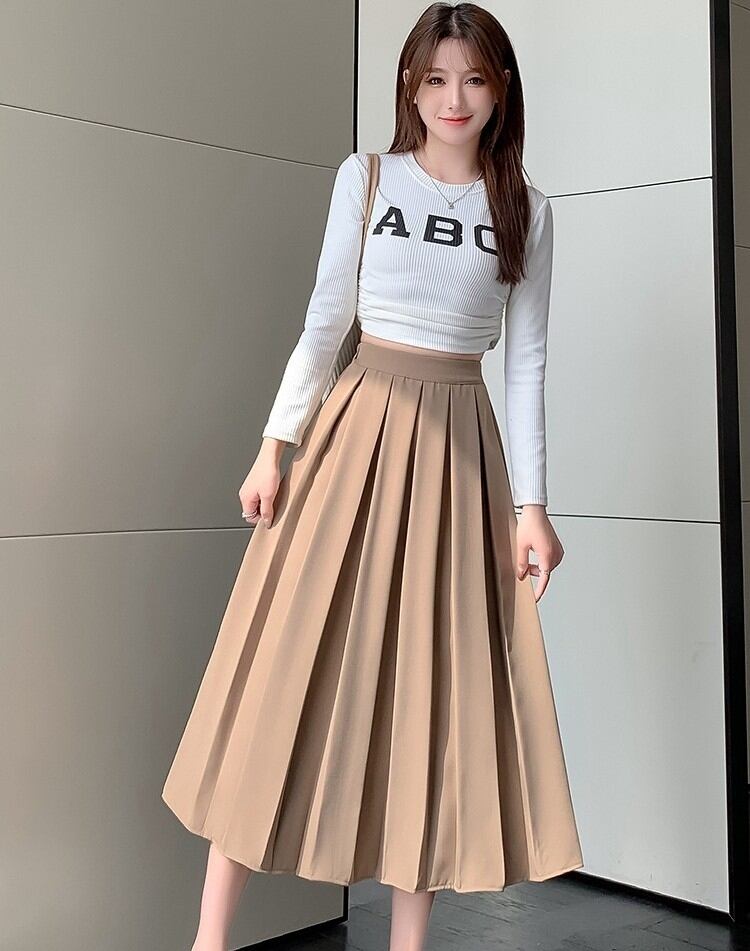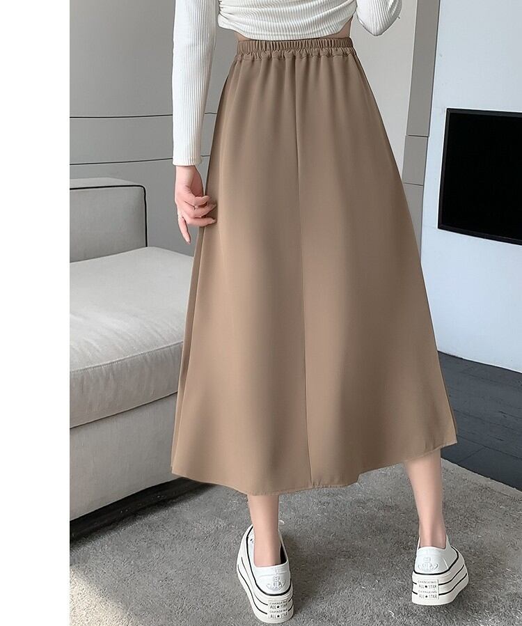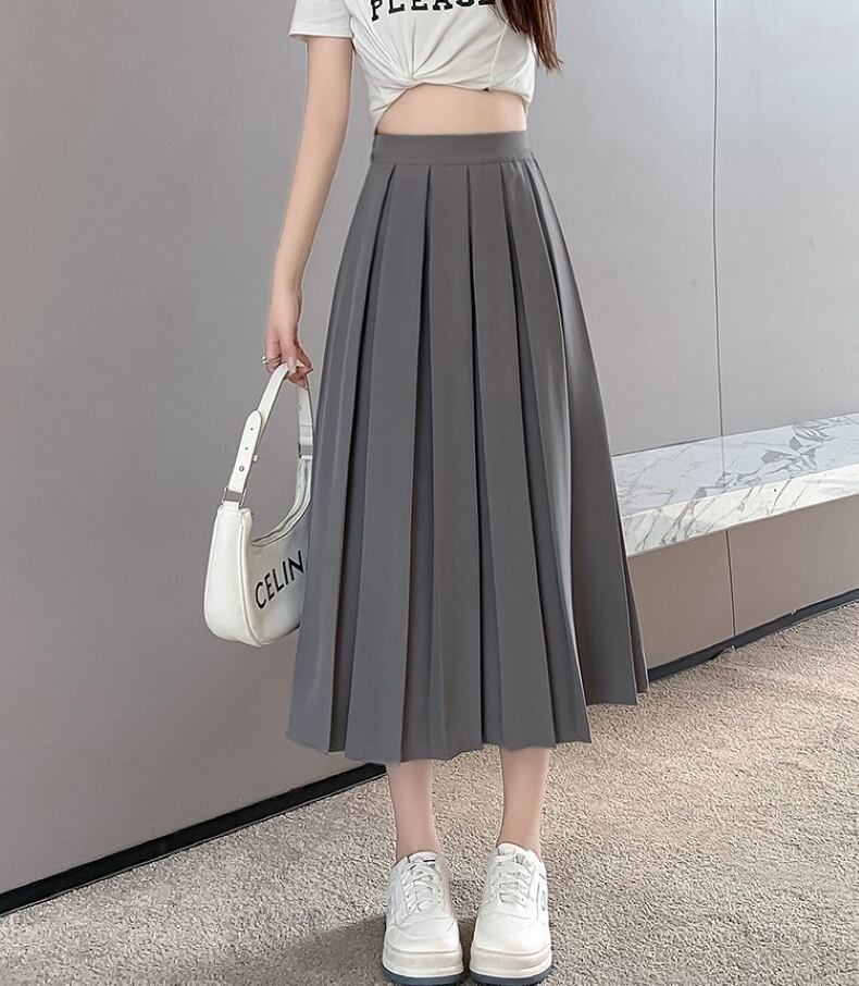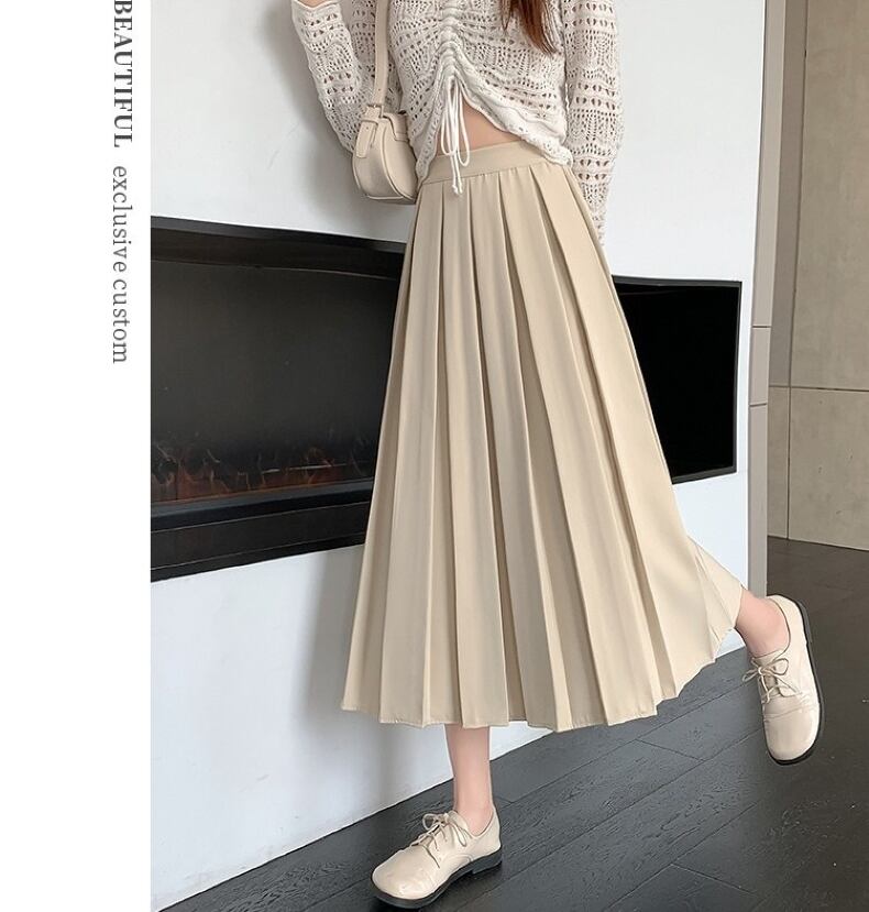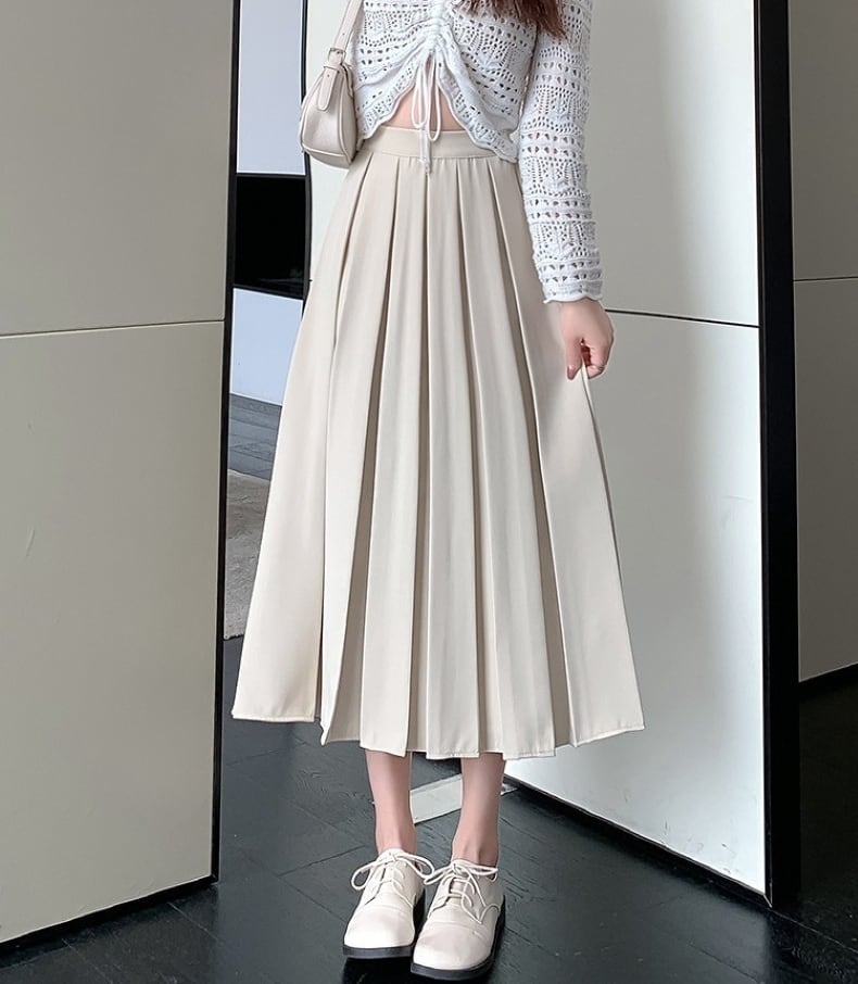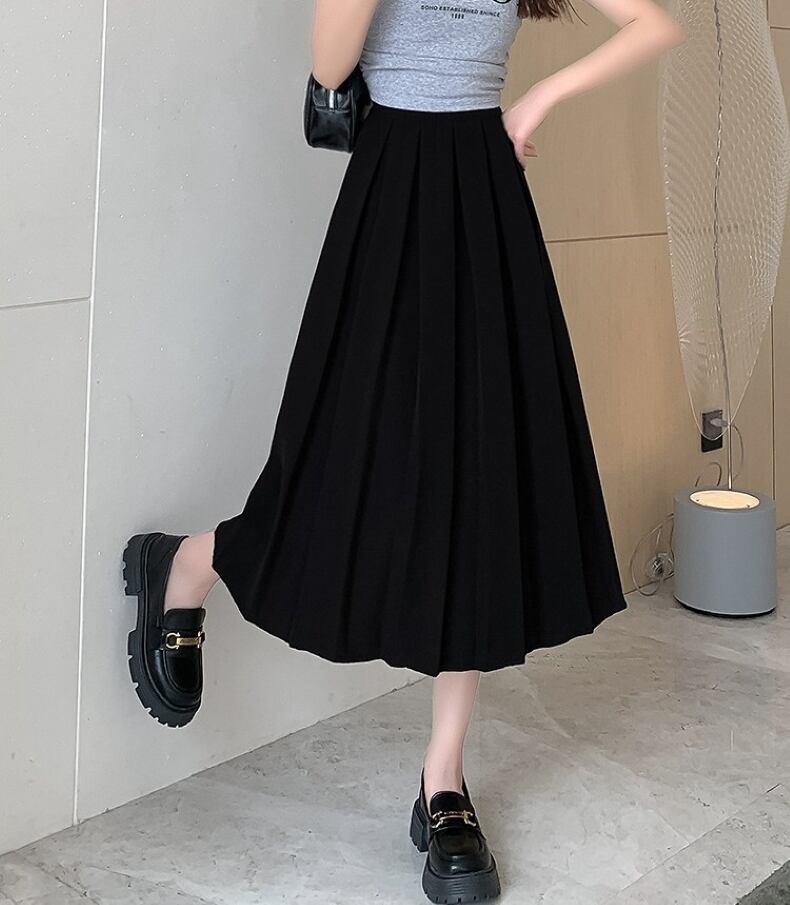 秋冬にぴったりなシンプルでおしゃれなレディースロングスカートのご紹介です!こちらのプリーツスカートは、ハイウエストデザインとウエストゴム仕様で、快適な履き心地を実現。ミモレ丈のAラインシルエットが女性らしさを引き立て、カジュアルなのに洗練された印象を与えます。