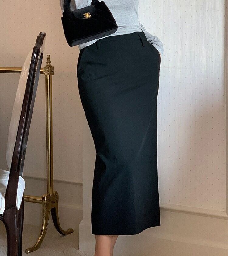 秋冬にぴったりな大人上品なタイトスカートのご紹介です!こちらのロングミモレ丈スカートは、ストレートシルエットとハイウエストデザインが特徴で、シンプルながらもお洒落な印象を与えます。きれいめスタイルを演出し、フォーマルなシーンやデートにも自信を持って着こなせるアイテムです。