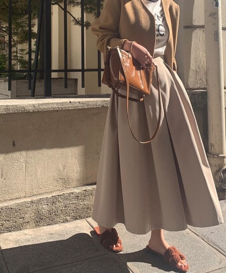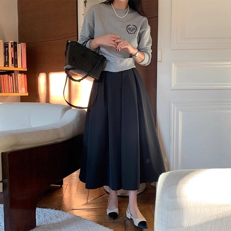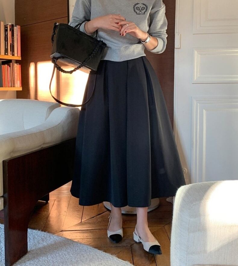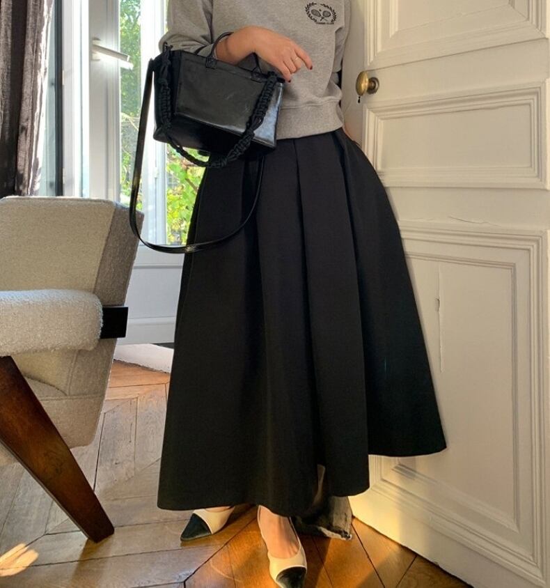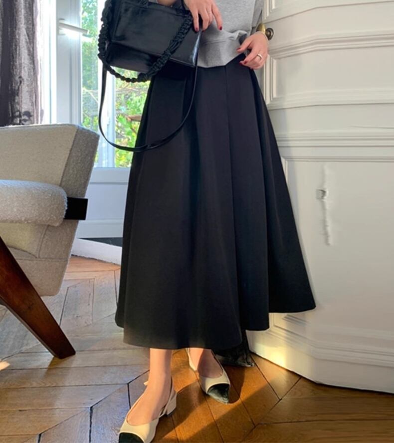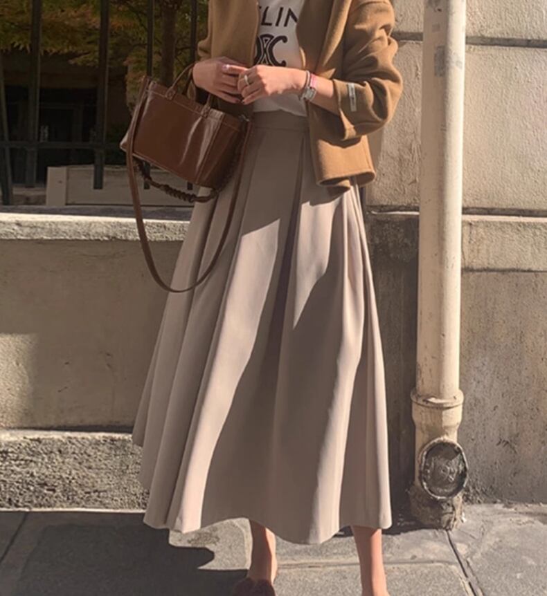 秋冬にぴったりな大人上品なフレアスカートのご紹介です!こちらのハイウエストロングスカートは、軽やかなAラインシルエットとタックデザインが特徴で、シンプルながらもお洒落な印象を与えます。きれいめスタイルを演出し、フォーマルなシーンやデートにも自信を持って着こなせるアイテムです。
