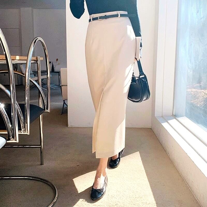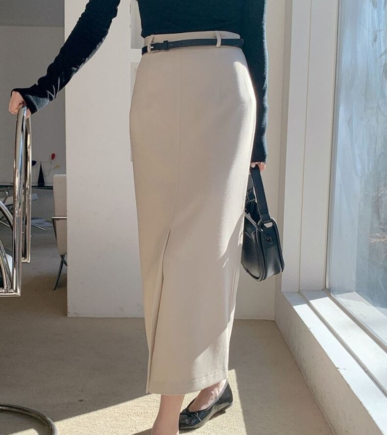 秋冬にぴったりな大人上品なロングスカートのご紹介です!こちらのタイトスカートは、ストレートIラインシルエットとハイウエストデザインが特徴で、シンプルながらもお洒落な印象を与えます。どんなシーンでも自信を持って着こなせるアイテムです。