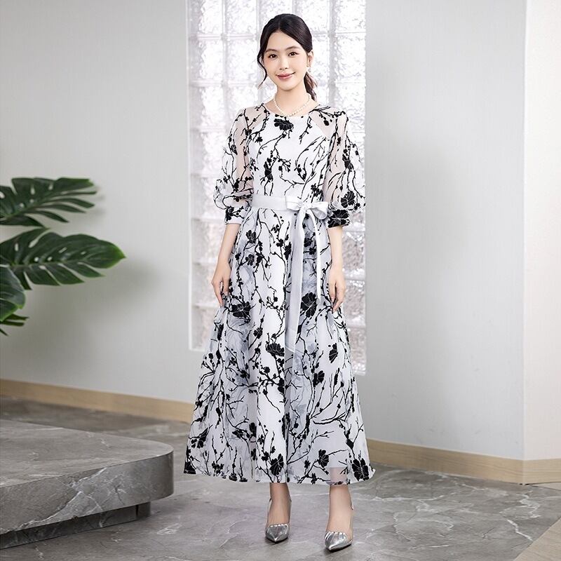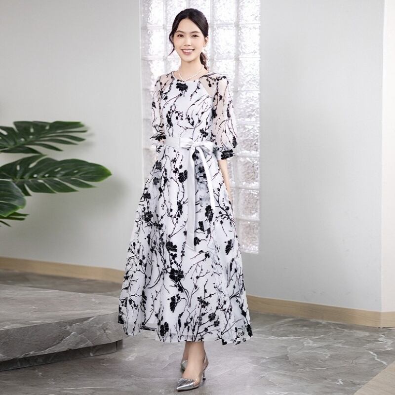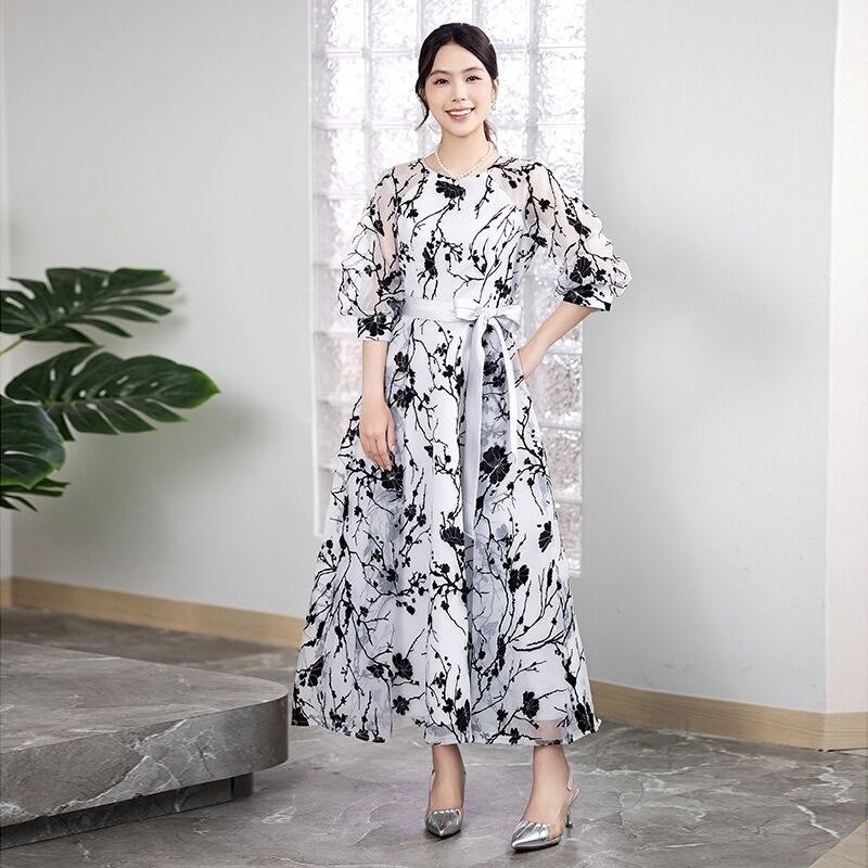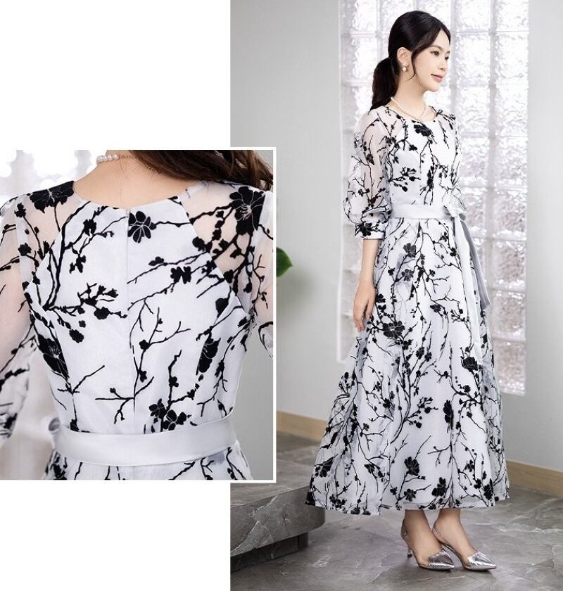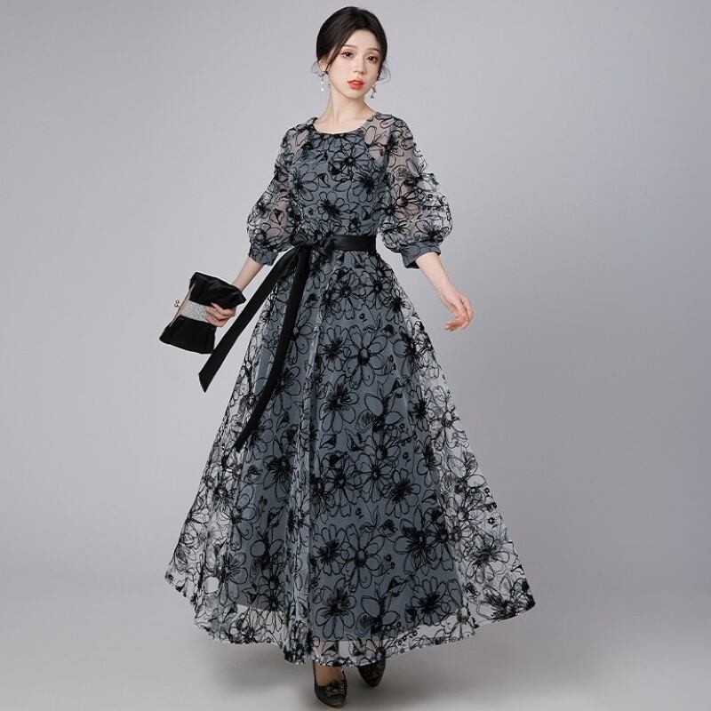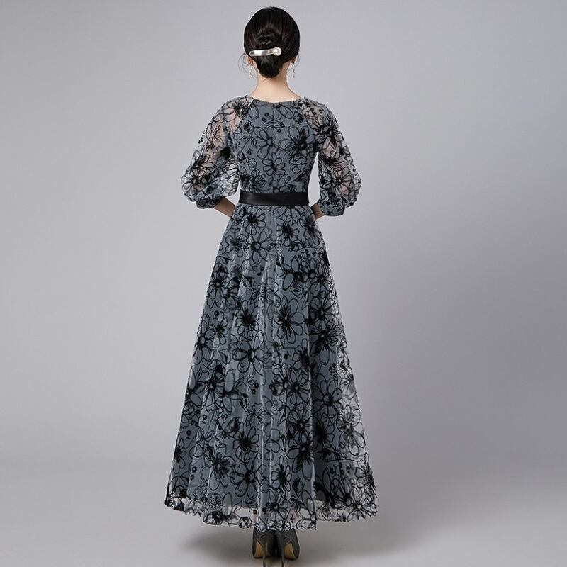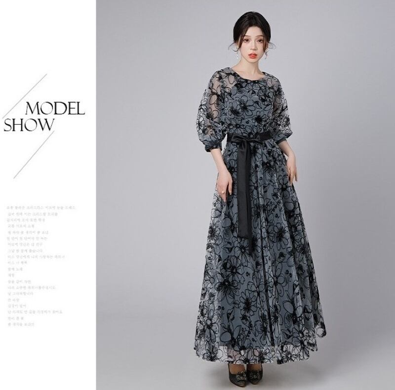 ドレス ワンピース パーティードレス 二次会ドレス ロングドレス イブニングドレス ワンピースドレス セクシードレス ロング丈 5分袖 Aライン レース 透け感 きれいめ 大人 お洒落 大人女子 エレガント 花柄 レディース 休日 パーティー イベント リゾート 送料無料 春 夏 秋 二次会 お呼ばれ パーティー S M L XL 2XL 3XL ブラック グレー