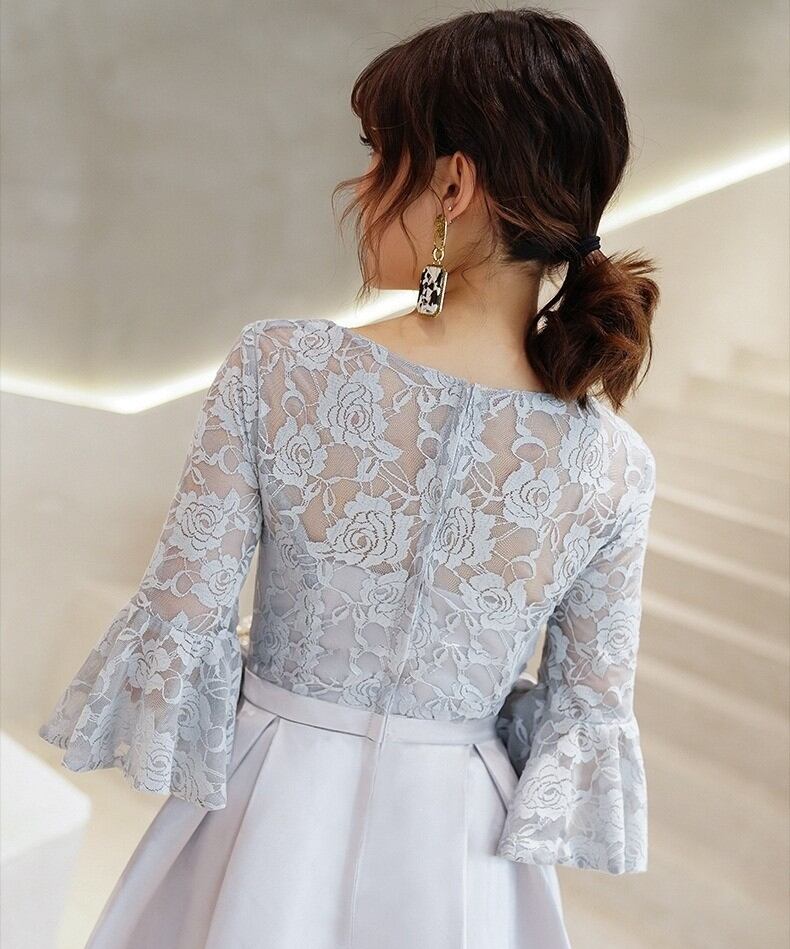 こちらのドレスは、エレガントなAラインシルエットと美しいレースが特徴で、特別な日やパーティー、二次会にぴったりなアイテムです!透け感のあるデザインが華やかさを演出し、上品さを感じさせる一着となっています。