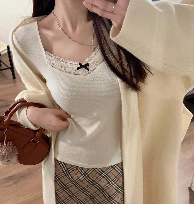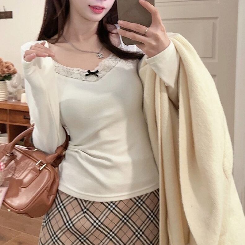 こちらのレディーストップスは、上品なレースリボンとスリムフィットが特徴の、おしゃれで大人可愛いインナートップスです!長袖デザインは、シーズンレスでお使いいただけ、春や秋のデートや休日のお出かけ、旅行にもぴったりなアイテムです。