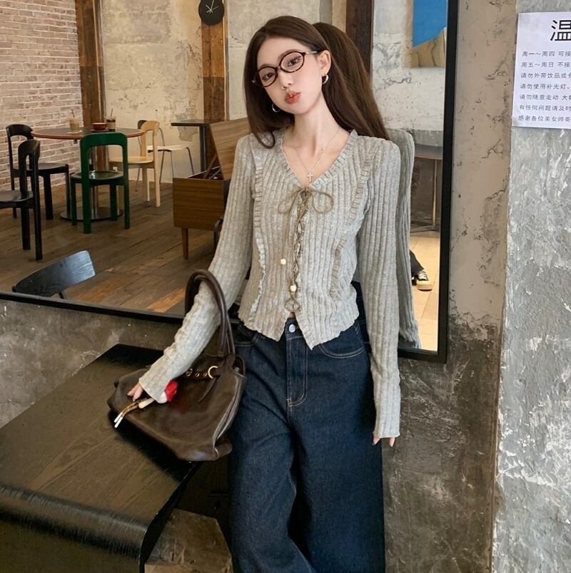 こちらのレディーストップスは、大人女子にぴったりなカジュアルなおしゃれアイテムです!長袖のVネックデザインにリボンの編み込みが施されたこのカットソーセーターは、春、秋、冬の3シーズンで活躍し、デートやお出かけ、休日の旅行、普段使いにも最適です。