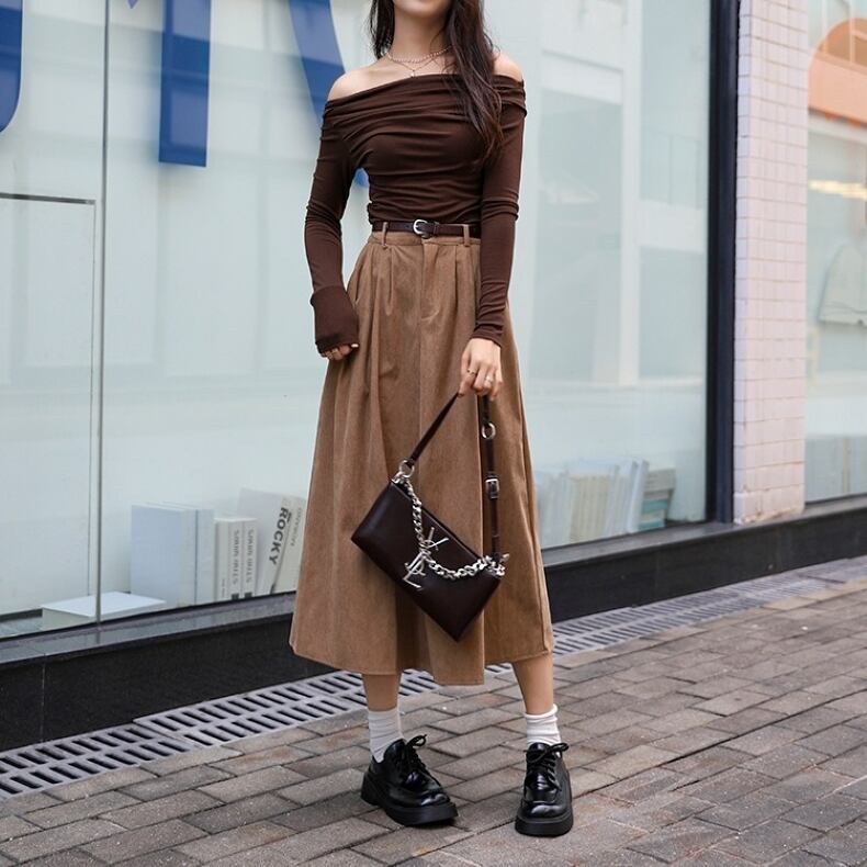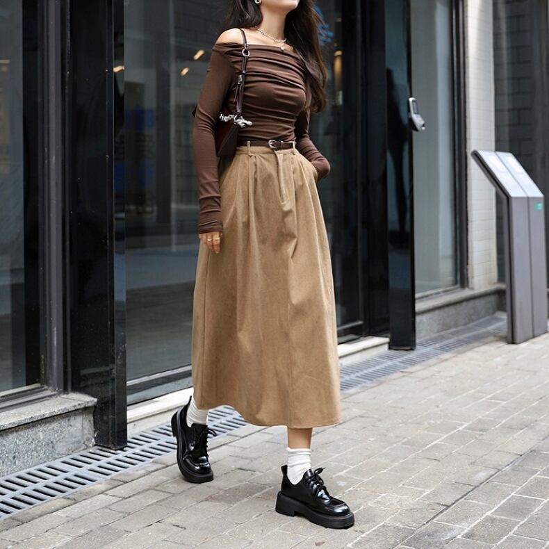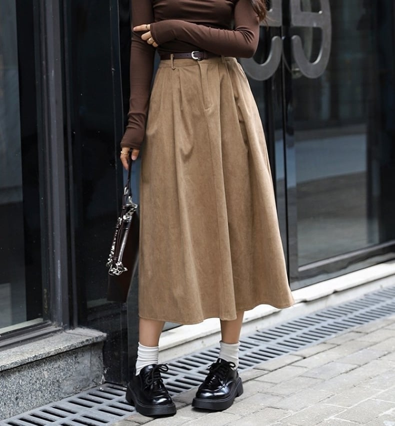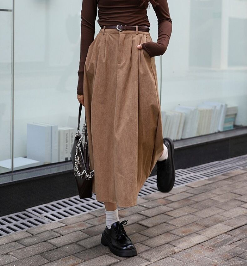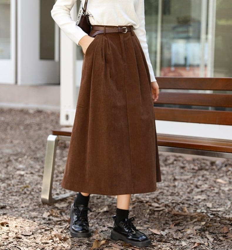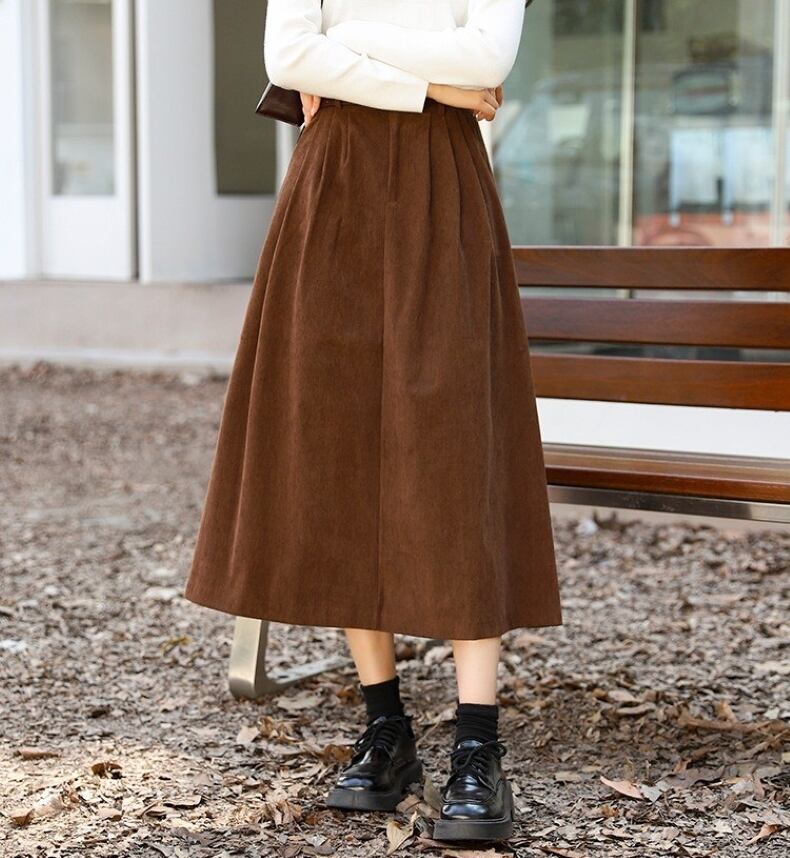 こちらのコーデュロイロングスカート レディースは、シンプルでありながらおしゃれな大人女子にぴったりのアイテムです!ミモレ丈のAラインシルエットが魅力で、秋や冬のおしゃれなコーディネートに欠かせない一品です。デートやお出かけ、休日、旅行など、さまざまなシーンで活躍します。