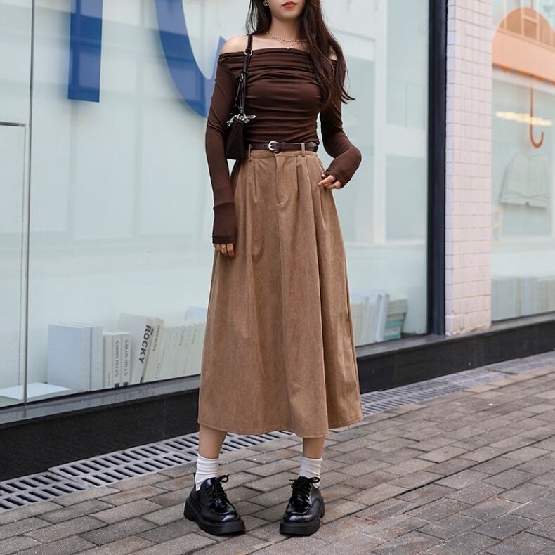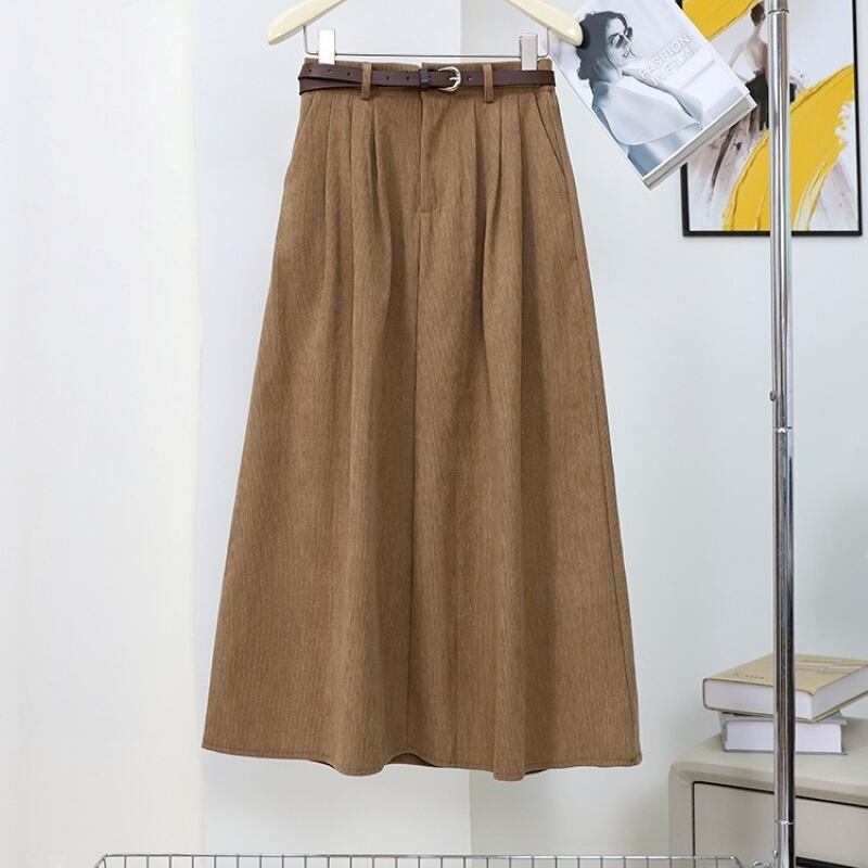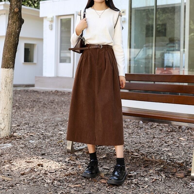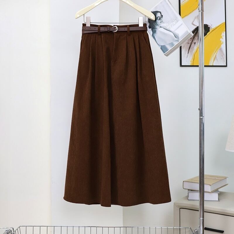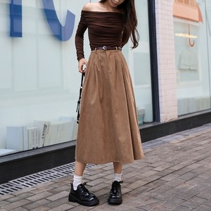 スカート レディース ボトムス ロングスカート コーデュロイスカート フレアスカート ミモレ丈 Aライン ハイウエスト ベルト付き シンプル 大人 おしゃれ 大人女子 とろみ感 秋 冬 お出かけ 休日 旅行 普段使い 脚長 定番 送料無料 S M L XL ブラック ブラウン カーキ