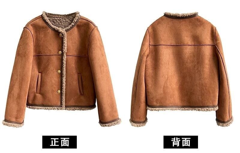 アウター コート ジャケット レディース ボアコート ショート丈 ムートンジャケット レザージャケット 長袖 前開き 厚手 裏起毛 大人 おしゃれ かっこいい メンズライク クール エレガント 秋 冬 デート お出かけ 休日 旅行 普段使い 暖かい 防寒 体系カバー 送料無料 S M L XL ブラウン