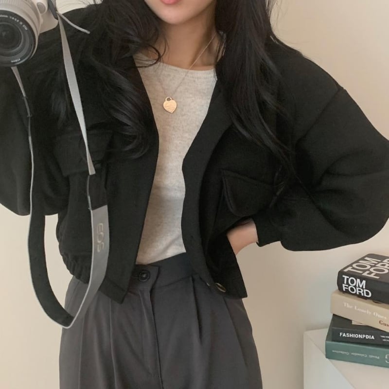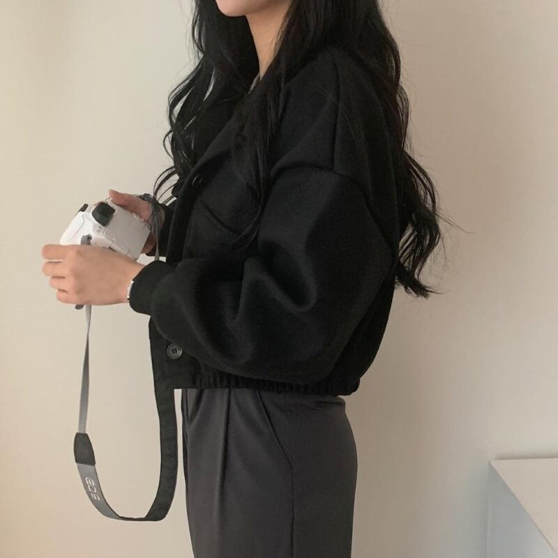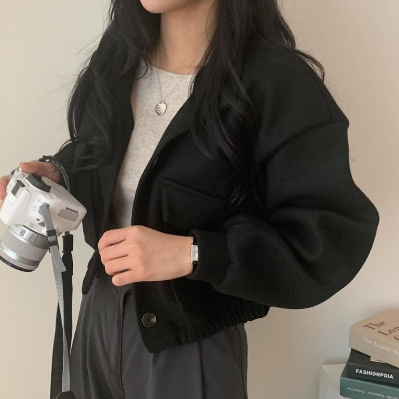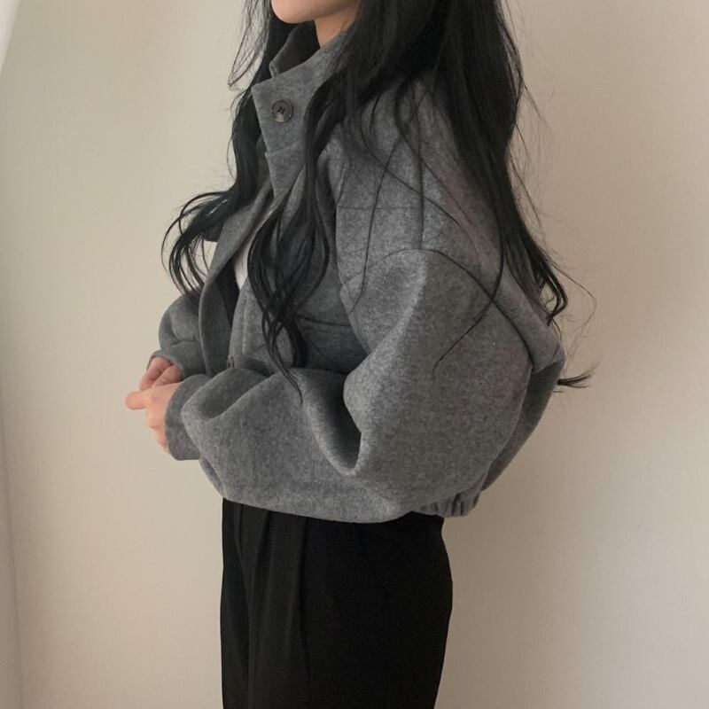 アウター ショートコート レディース アウター ブルゾン ジャケット ショート丈 長袖 ハーフネック ポケット 前開き シンプル 大人 おしゃれ レトロ 大人女子 メンズライク クール とろみ感 秋 冬 お出かけ 休日 旅行 普段使い 防寒 体系カバー 送料無料 M L XL ブラック グリーン グレー ベージュ
