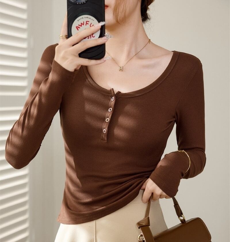 Uネックとスリムなシルエットが、女性らしさを引き立てつつ、カジュアルな中にもきれいめの雰囲気を演出します。とろみ感のある素材感は、体型を美しく見せ、着心地も抜群。ホワイト、ブラック、コーヒー、ダークグレー、ライトグレーと豊富な色展開も嬉しいポイントで、どんなスタイルにも合わせやすいのが特徴です。
