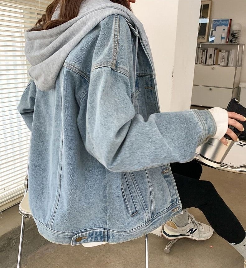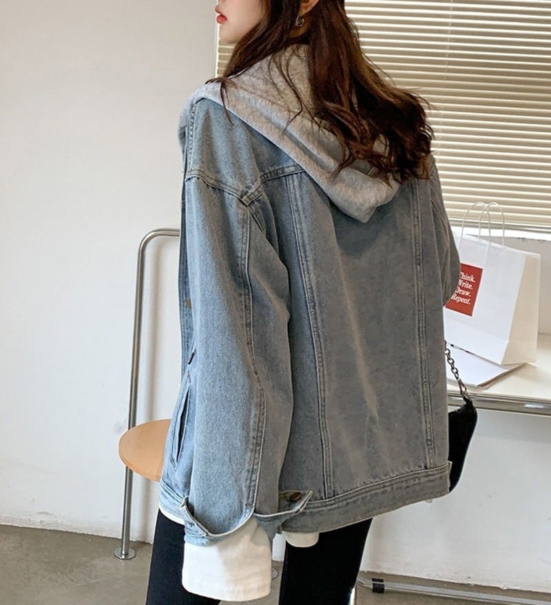 アウター ジャケット Gジャン レディース デニムジャケット フード付き オーバーサイズ 重ね着風 長袖 ポケット 前開き きれいめ カジュアル 上品 おしゃれ レトロ 大人女子 とろみ感 秋 冬 デート お出かけ 休日 旅行 普段使い 韓国系 スタイル 防寒 体系カバー 送料無料 S M L XL 2XL ブラック ライトブルー
