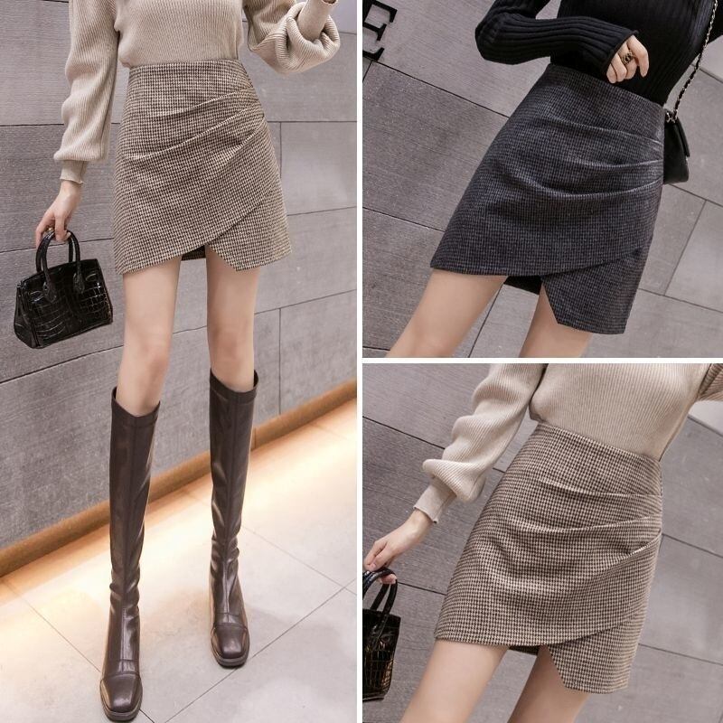 スカート ミニスカート レディース アシンメトリー チェック柄 タイト ショート丈 膝上 グレンチェック Aライン ハイウエスト きれいめ 大人 おしゃれ 大人女子 セクシー フォーマル 春 秋 冬 デート お出かけ 休日 旅行 普段使い 美脚 脚長 送料無料 S M L XL 2XL ブラック カーキ
