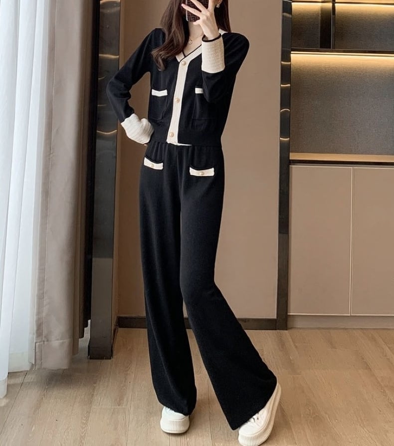 セットアップ レディース ニットカーディガン ワイドパンツ ニット スーツ ワイド ショートニット セーター ハイウエスト レッグ パンツ 上下セット ツーピース きれいめ カジュアル 大人 おしゃれ エレガント フォーマル 春 秋 冬 お出かけ 休日 旅行 普段使い 韓国系 スタイル 送料無料 S M L XL ブラック