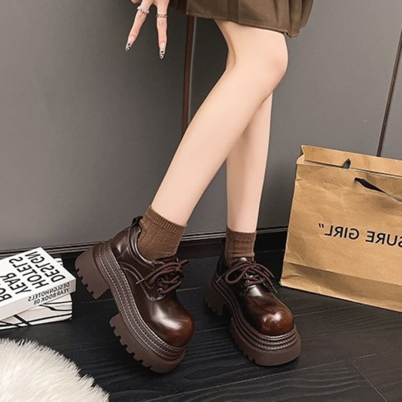 厚底 シューズ レディース レースアップシューズ 靴 レディースシューズ 7cmヒール ラウンドトゥ 歩きやすい 履きやすい 走れる 美脚 脚長 レザー 大人可愛い カジュアル おしゃれ キュート 女っぽ こなれ感 春 秋 冬 学生 デート お出かけ 休日 旅行 普段使い 韓国系 スタイル 送料無料 22.5cm 23.0cm 23.5cm 24.0cm 24.5cm ブラック ブラウン