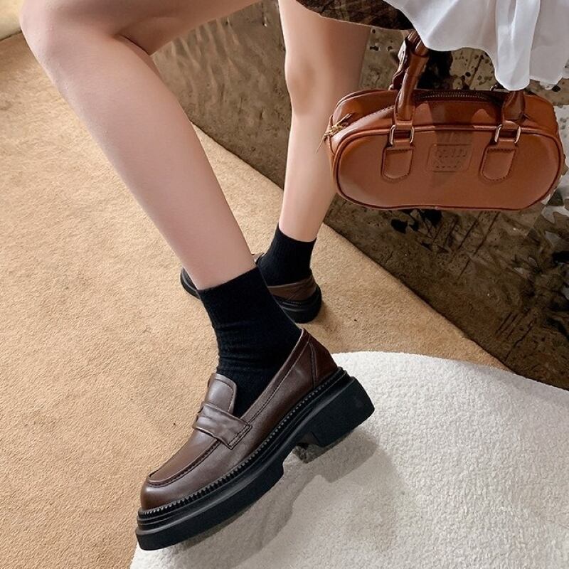 シューズ 靴 革靴 厚底 ローファー レディース 通勤シューズ ラウンドトゥ 痛くない 歩きやすい 履きやすい 柔らかい シンプル カジュアル 大人 おしゃれ 大人っぽい とろみ感 無地 春 秋 冬 通勤 学生 デート お出かけ 休日 旅行 普段使い 定番 送料無料 22.0cm 22.5cm 23.0cm 23.5cm 24.0cm 24.5cm 25.0cm ブラック ブラウン