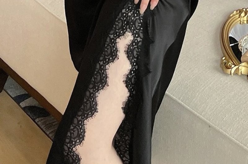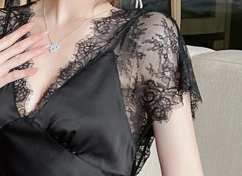 ネグリジェ セクシー ランジェリー 部屋着 ワンピース ナイトウェア レディース ルームウェア レース ナイトドレス 半袖 Vネック きれいめ 大人 お洒落 大人女子 セクシー エレガント 春 夏 秋 お出かけ お泊まり 旅行 普段使い 送料無料 M L XL ブラック