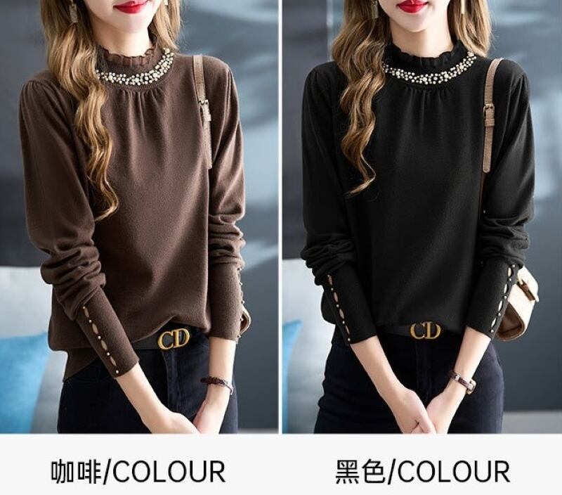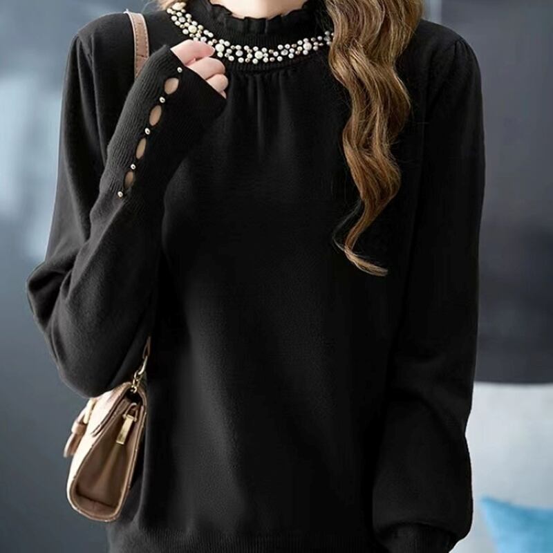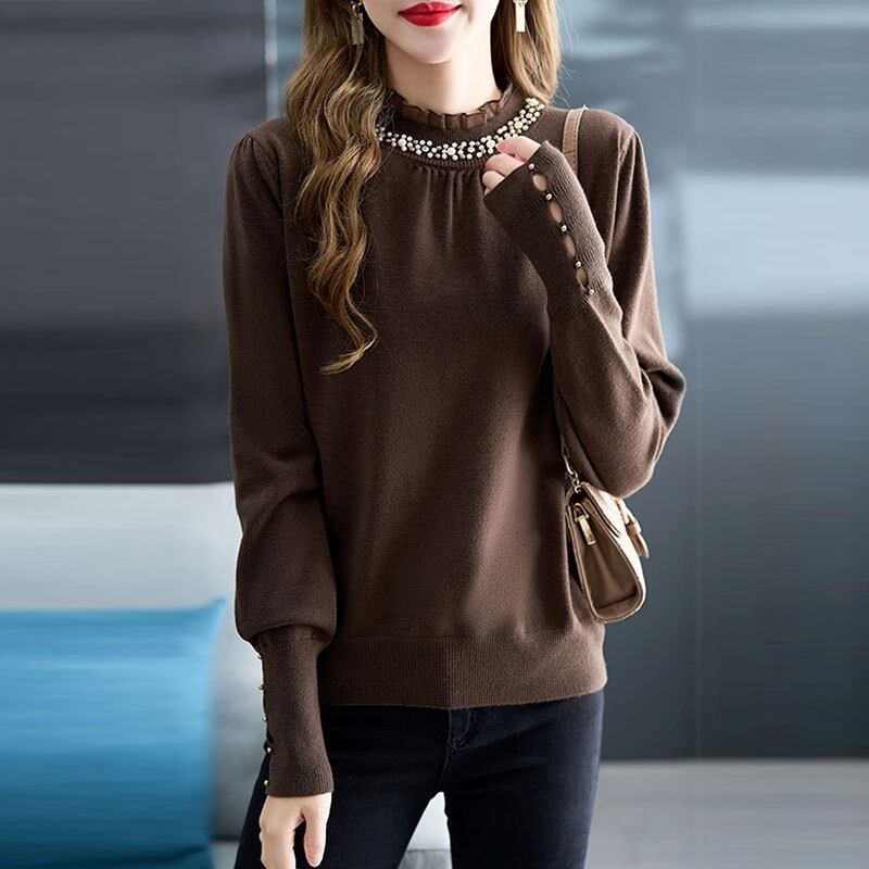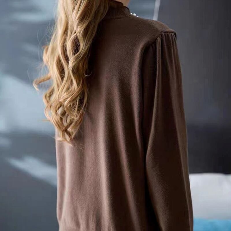 ニットセーター トップス レディース ニット カットソー フリルネック レース プルオーバー 長袖 ハーフタートルネック きれいめ 大人 上品 お洒落 エレガント 存在感 春 秋 冬 デート お出かけ 休日 旅行 普段使い プレゼント 送料無料 フリーサイズ ブラック コーヒー