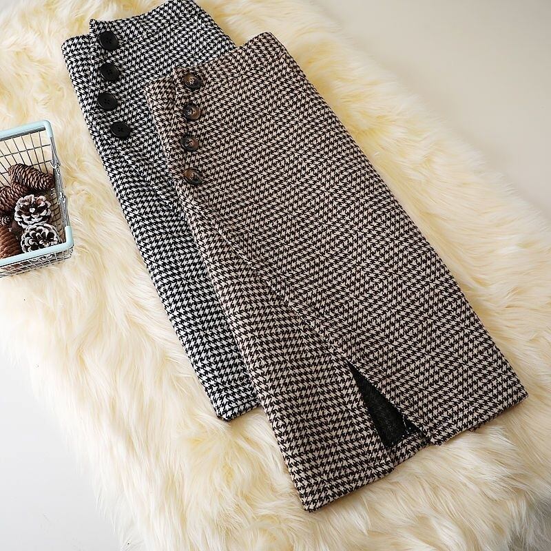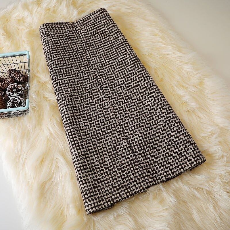 スカート レディース ラップ風 タイトスカート 千鳥格子スカート ミディ丈 Aライン ポケット 厚手 きれいめ 大人 おしゃれ 大人女子 エレガント 千鳥格子 春 秋 冬 デート お出かけ 休日 旅行 普段使い 韓国系 スタイル 美脚 脚長 送料無料 S M L XL 2XL ブラック コーヒー