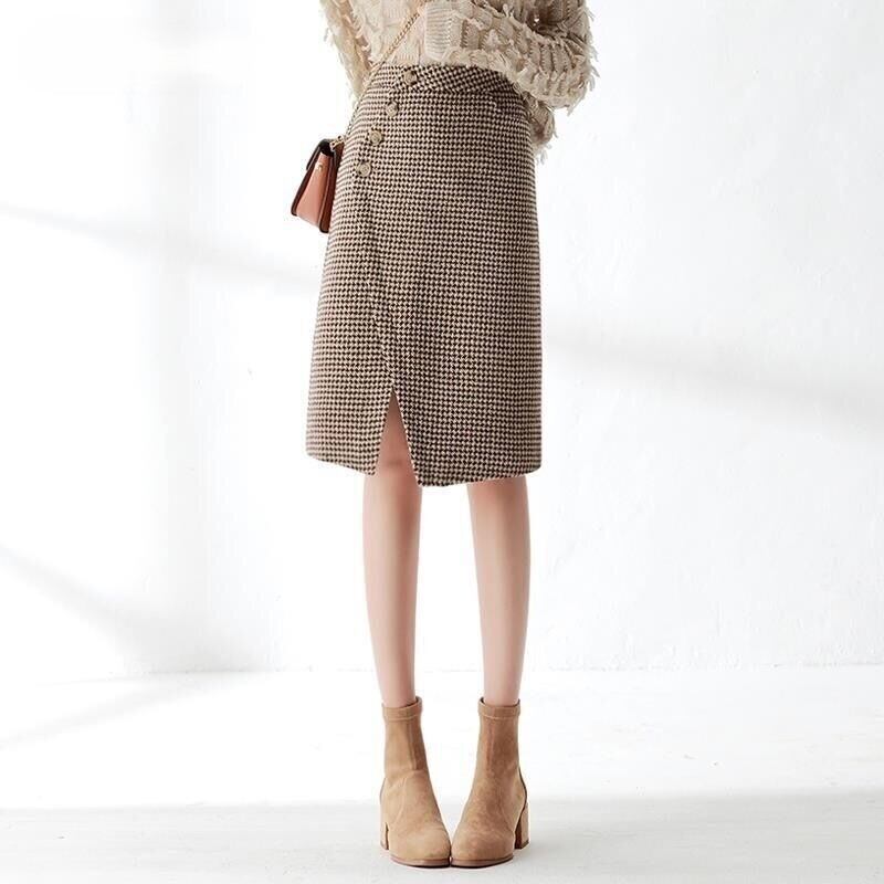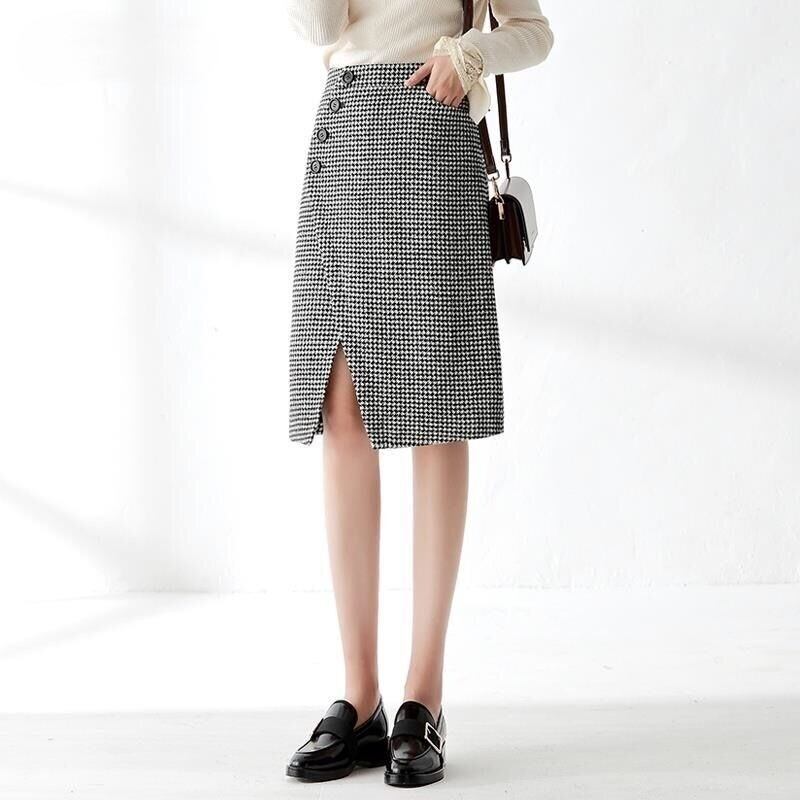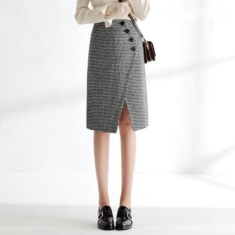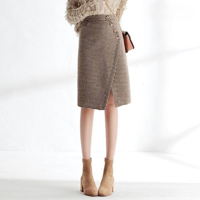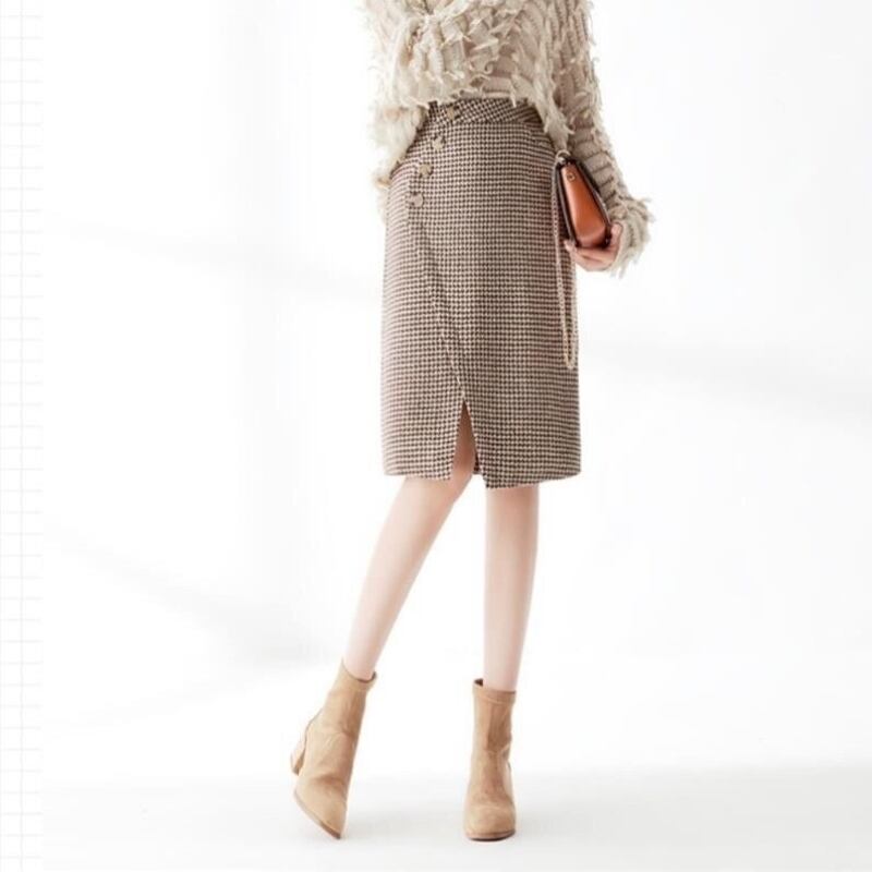 大人の女性にぴったりなエレガントでおしゃれな「スカート レディース ラップ風 タイトスカート 千鳥格子スカート ミディ丈 Aライン ポケット 厚手」のご提案です!こちらのスカートは、春秋冬のデートやお出かけ、休日の旅行、普段使いなど、さまざまなシーンでスタイリッシュな印象を与えること間違いなしです。