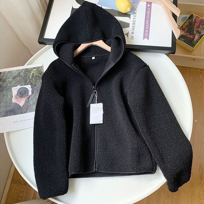 アウター ボアジャケット レディース フリースジャケット フード付き ジップアップ ブルゾン パーカー もこもこ ファスナー 前開き シンプル カジュアル 大人 おしゃれ 大人女子 無地 春 秋 冬 お出かけ 休日 旅行 普段使い 暖かい 防寒 定番 送料無料 S M L XL ブラック ブルー ブラウン オフホワイト