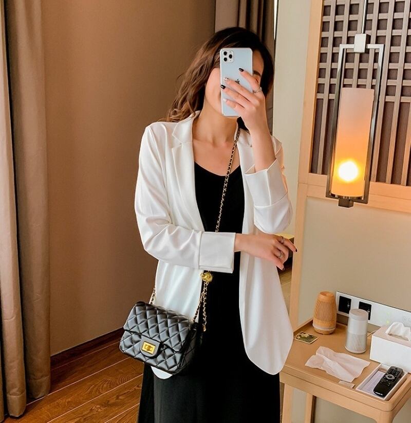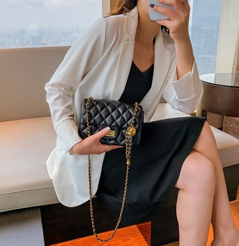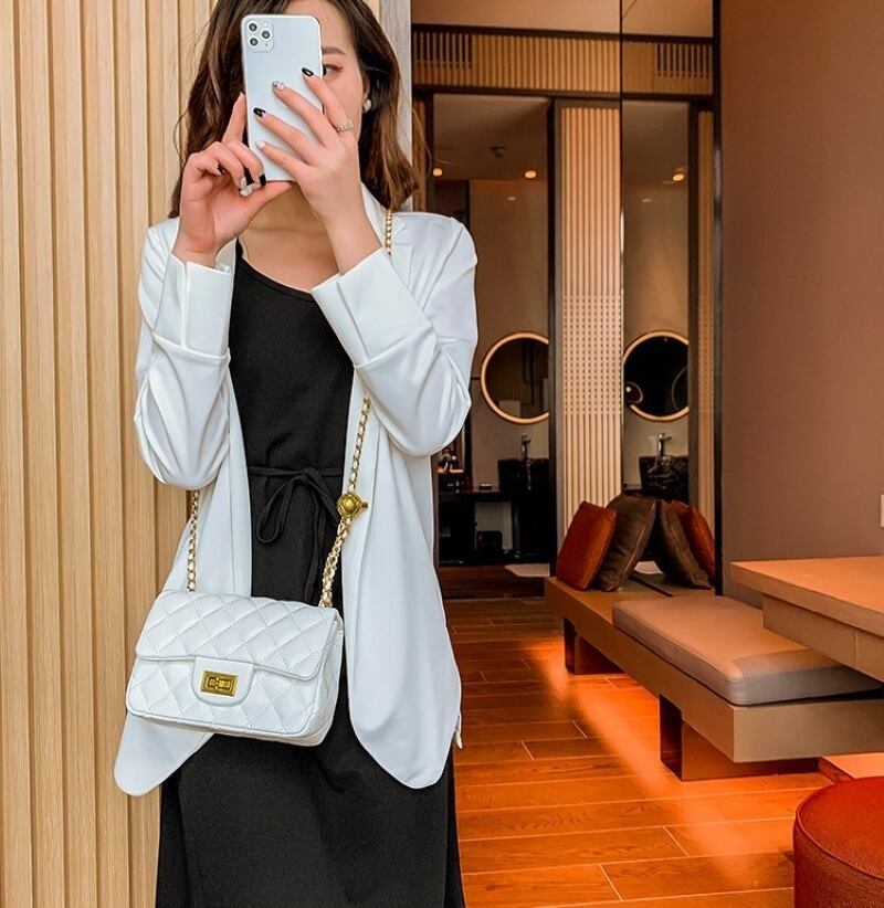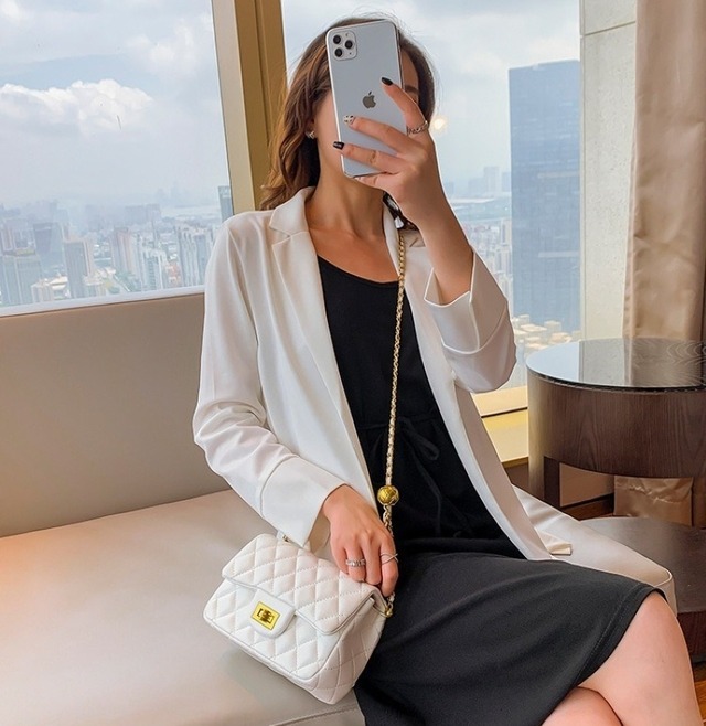 このショルダーバッグは、贅沢なキルティング加工が施されたPU素材で仕立てられており、上品さを演出します。スクエア型のデザインは、シルエットを美しく保ちつつ収納力も兼ね備えています。また、チェーンのアクセントが加わり、カジュアルな中にも洗練された印象を与えます。カラーはホワイトとブラックの2色をご用意しており、どんなコーディネートにも合わせやすいです。