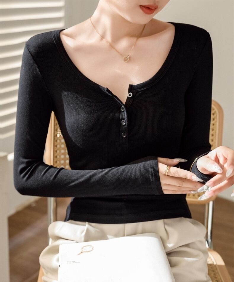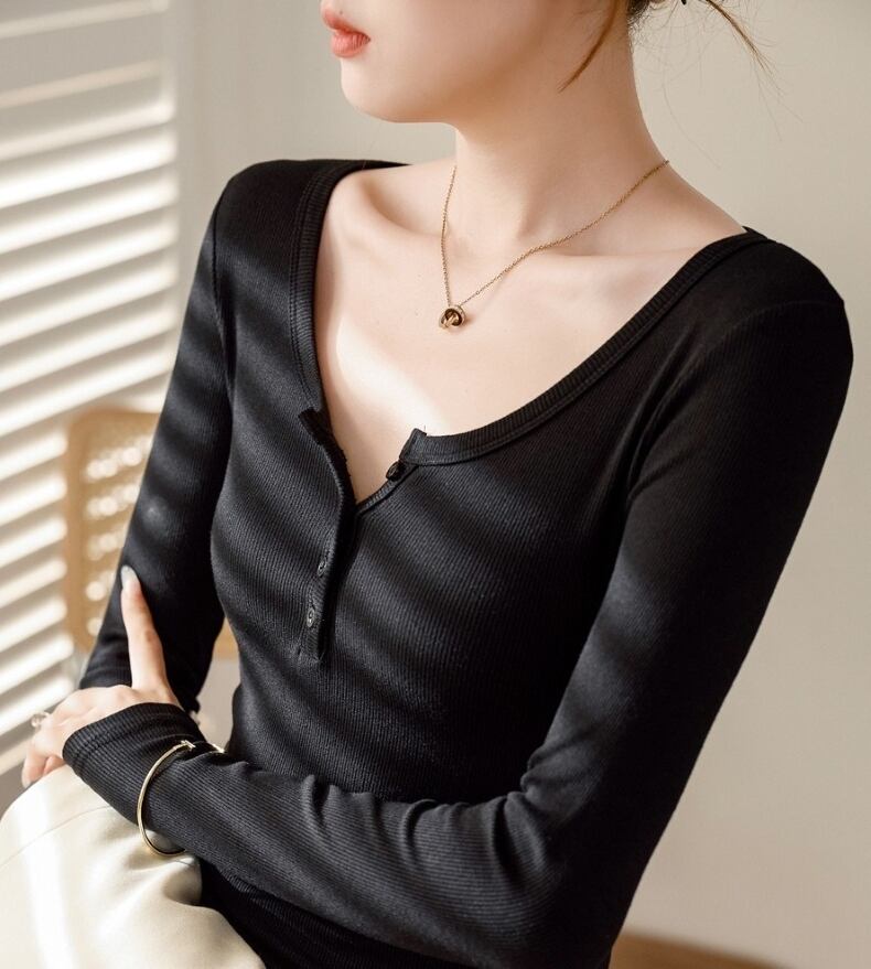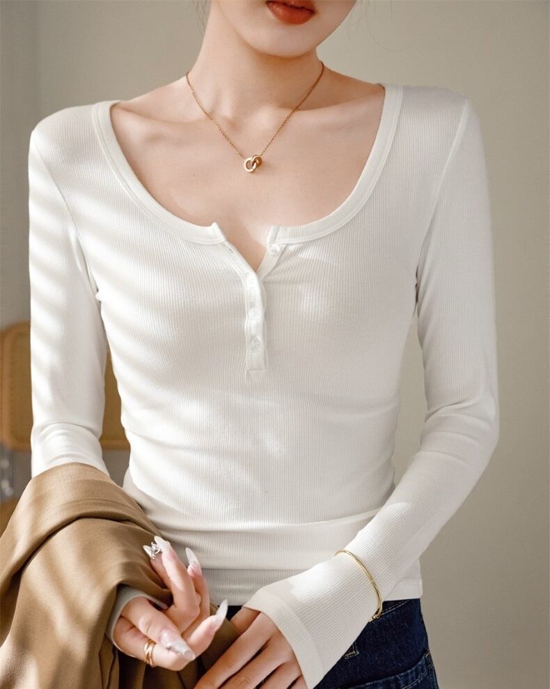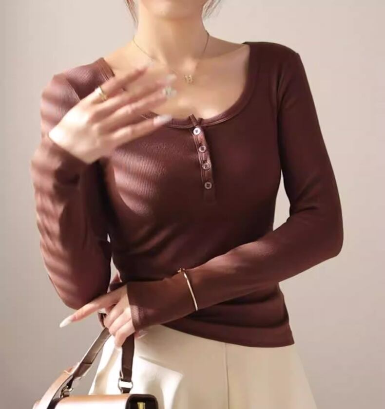 大人の女性にぴったりなおしゃれでシンプルな「トップス Tシャツ レディース インナー 長袖Tシャツ Uネック プルオーバー」のご提案です!こちらのTシャツは、春、秋、冬のお出かけやデート、旅行、普段使いなど、さまざまなシーンで活躍します。