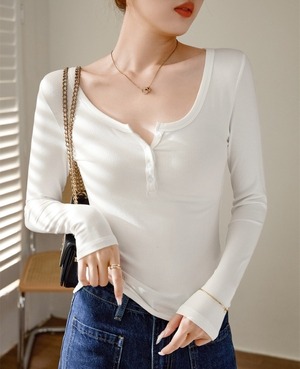 トップス Tシャツ レディース インナー 長袖Tシャツ Uネック プルオーバー 伸縮性 きれいめ シンプル カジュアル 大人 おしゃれ 大人女子 セクシー フォーマル 無地 春 秋 冬 デート お出かけ 休日 旅行 普段使い 定番 送料無料 S M L XL 2XL ホワイト ブラック コーヒー ダークグレー ライトグレー