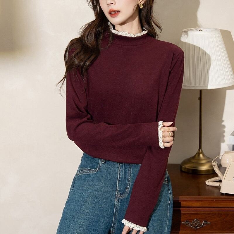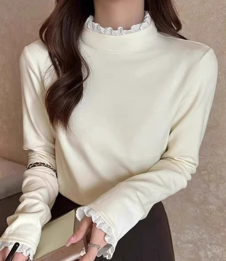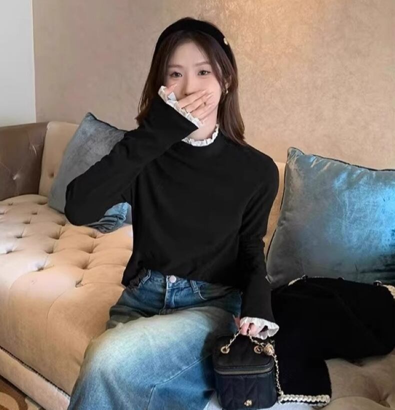 このニットカットソーは、柔らかな素材を使用しており、優れた保温性と快適な着心地が魅力です。フリルネックと袖口のデザインが大人可愛い印象を与え、シンプルながらエレガントさを演出します。普段使いや特別な日にも活躍する一着です。色展開はホワイト、ブラック、コーヒー、アプリコット、ワインレッドの5色をご用意しており、どの色もあなたのスタイルを引き立てます。