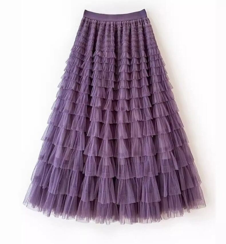 こちらのスカートは、ふんわりとしたボリューム感と軽やかなフリルが魅力!ウエストゴム仕様なので、着脱も楽ちんで体型を気にせず快適に過ごせます。エレガントな印象ながら、デイリーユースにもぴったり。春や秋のデートやお出かけ、旅行先でのリラックスタイムにも大活躍です。色展開が豊富で、ホワイト、ブラック、レッド、ブルー、グリーン、パープル、ブラウン、グレー、カーキ、ピンク、ワインレッド、アプリコット、ライトグリーンの14色からお選びいただけますので、お好みに合わせてコーディネートを楽しんでください。