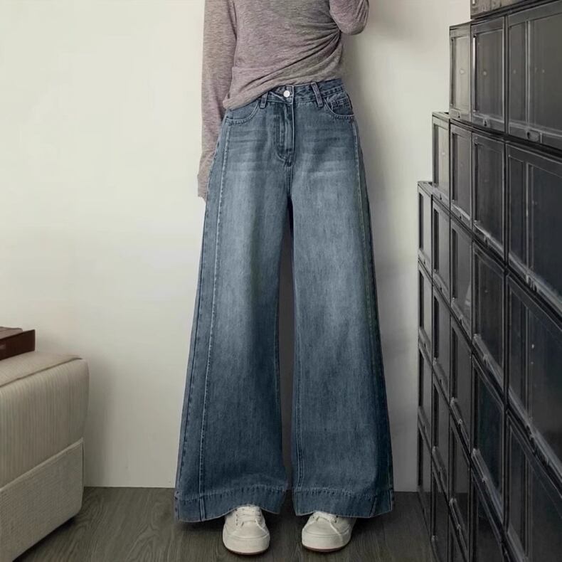 大人の女性にぴったりなおしゃれでカジュアルな「ボトムス デニスパンツ Gパン レディース ワイドデニスパンツ ロング丈 ワイド ファスナー ポケット ハイウエスト デニム シンプル カジュアル 大人 おしゃれ レトロ メンズライク クール とろみ感 無地 春 夏 秋 冬 オールシーズン お出かけ 休日 アウトドア 旅行 普段使い 脚長 定番」のご提案です!このデニスパンツは、洗練されたデザインと快適な着心地を兼ね備え、様々なシーンであなたの魅力を引き立てます。