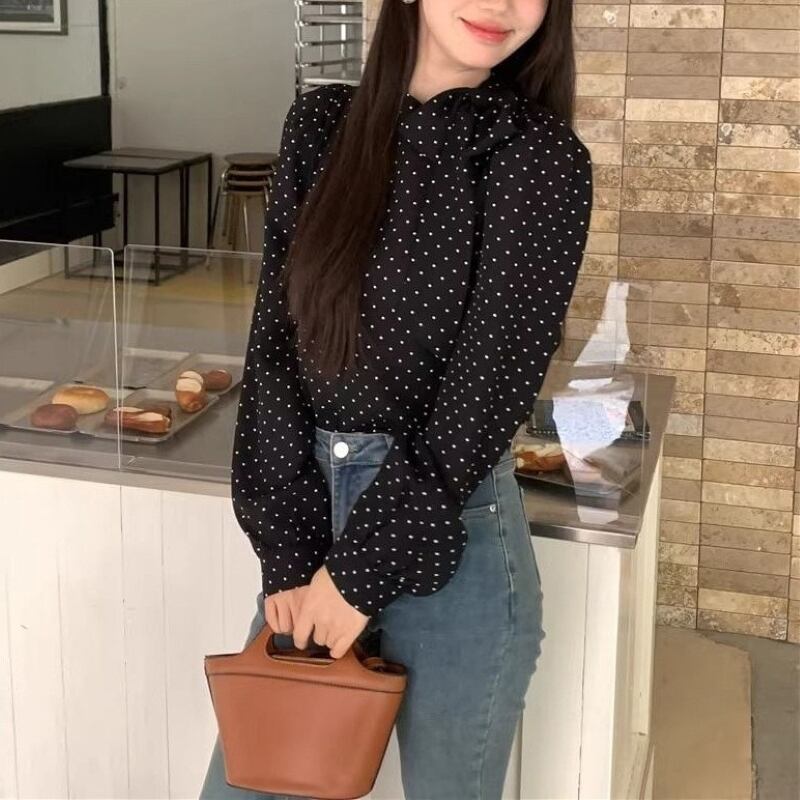 大人の女性にぴったりなおしゃれでエレガントな「トップス シャツ ブラウス レディース プルオーバー ドットボウタイリボンブラウス 長袖 薄手きれいめ 大人 おしゃれ 大人女子 エレガント 存在感 フォーマル ドット柄 春 秋 お出かけ 休日 旅行 普段使い 韓国系 スタイル 送料無料 S M L XL ブラック アイボリー」のご提案です!このドットボウタイリボンブラウスは、シンプルながらも存在感のあるデザインが特徴で、様々なシーンであなたの魅力を引き立てます。
