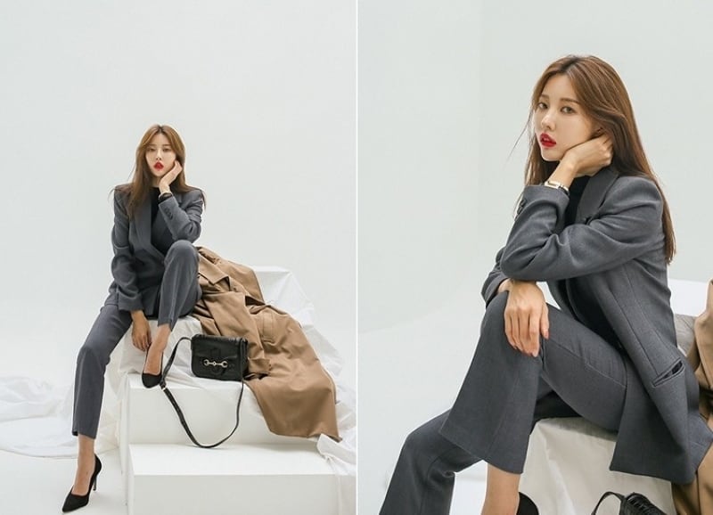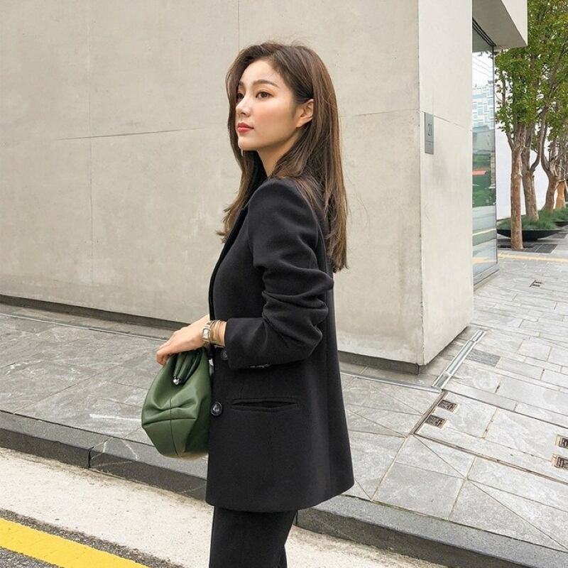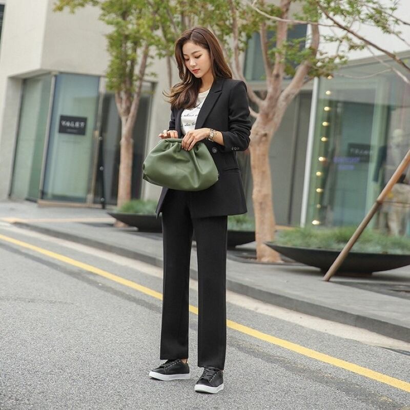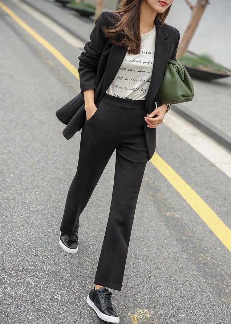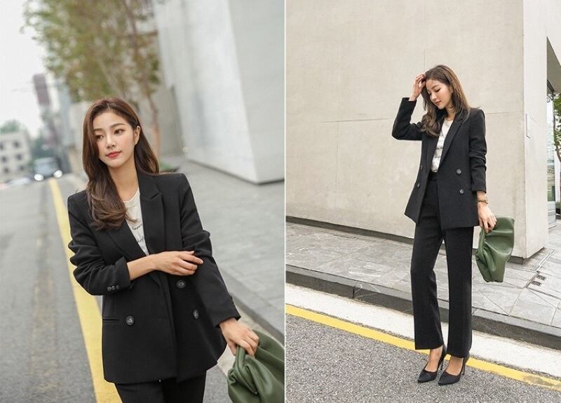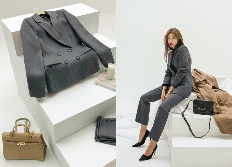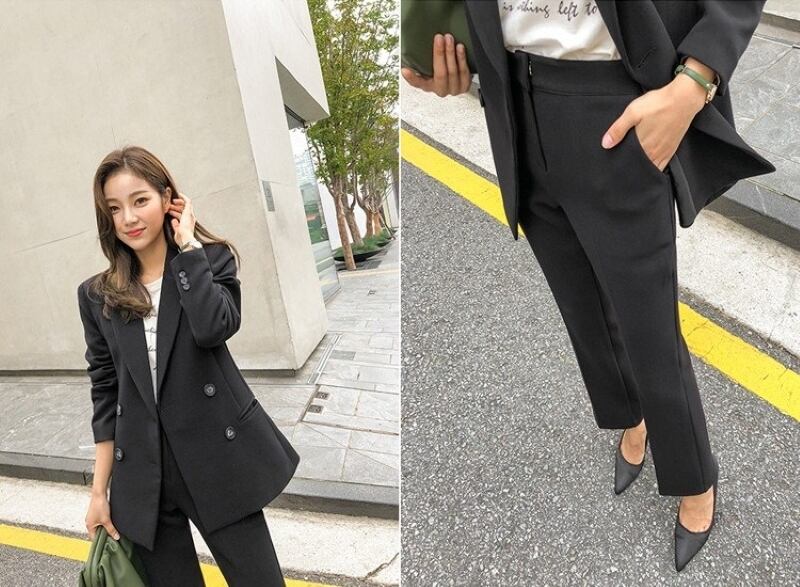こちらのセットアップは、テーラードジャケットと九分丈パンツの組み合わせが特徴で、シルエットを美しく引き立てます。フォーマルな場面からビジネスシーン、さらに休日のお出かけまで幅広く活用できるアイテムです。ブラックとグレーの2色展開で、シックな印象を与え、どんなコーディネートにも合わせやすいのが魅力です。