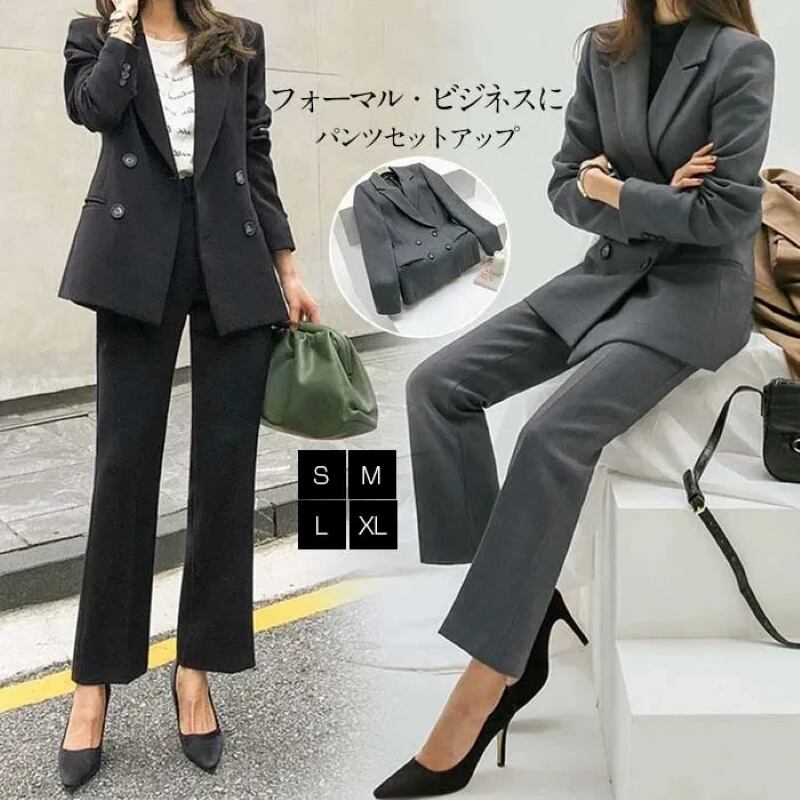大人の女性にぴったりなおしゃれでエレガントな「パンツスーツ セットアップ レディース フォーマルスーツ ビジネススーツ テーラードジャケット 九分丈パンツ 上下セット きれいめ 大人 おしゃれ かっこいい 大人女子 クール エレガント フォーマル 春 秋 ビジネス OL 通勤 お出かけ 休日 普段使い 定番 送料無料 S M L XL ブラック グレー」のご提案です!このパンツスーツは、スタイリッシュでありながら、どんなシーンにも対応できる万能なアイテムです。