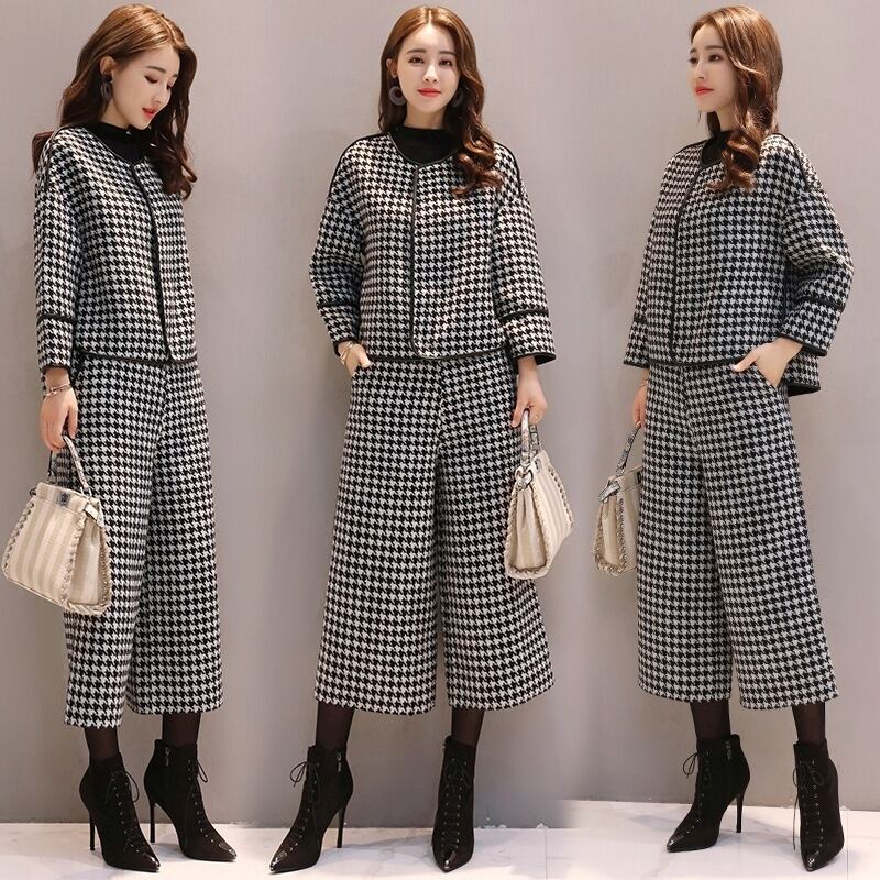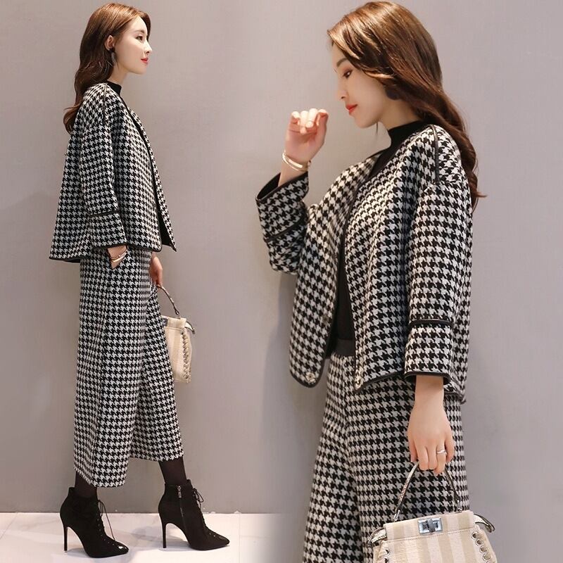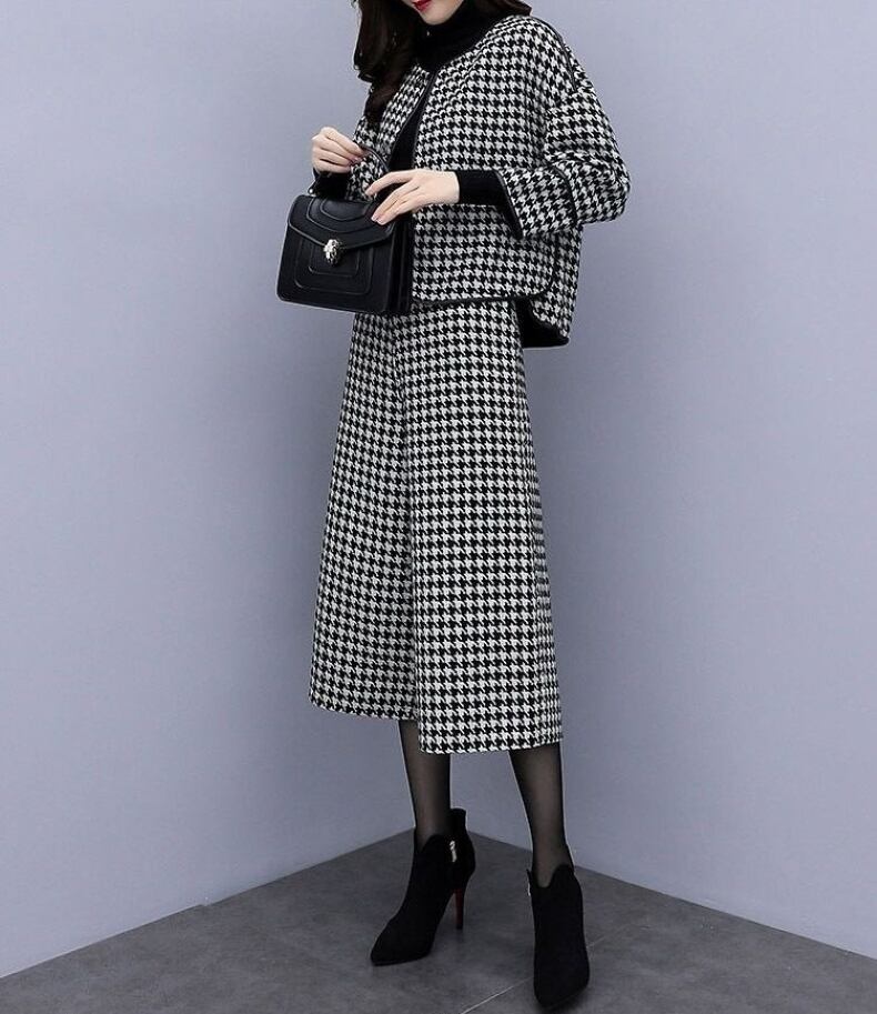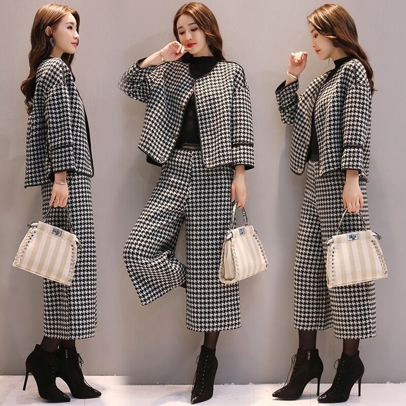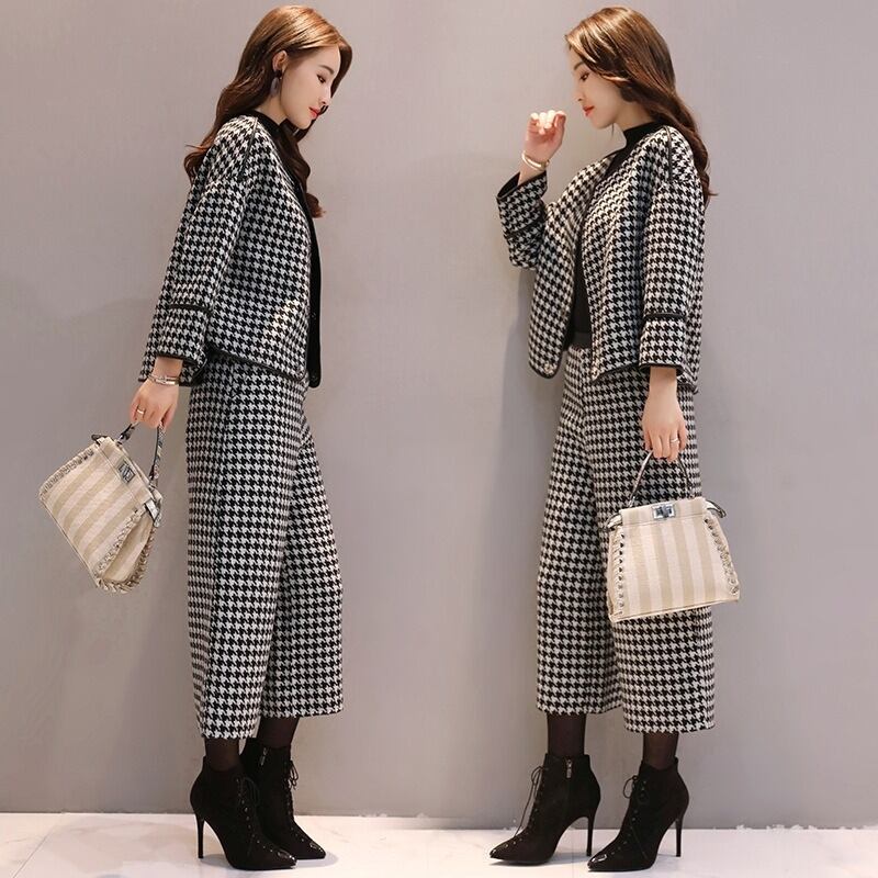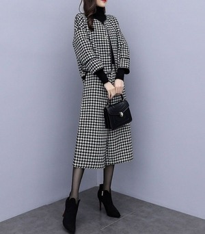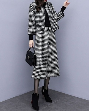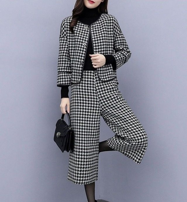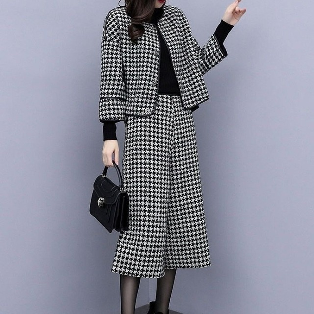 スーツ パンツスーツ レディース パンツスーツ セットアップ ジャケット 千鳥格子 ツイード パンツ ワイドパンツ ロングパンツ ハイウエスト 上下セット きれいめ 大人 上品 おしゃれ エレガント 存在感 春 秋 冬 入学式 入園式 卒業式 卒園式 お出かけ 休日 旅行 普段使い 定番 送料無料 S M L XL 2XL 3XL
