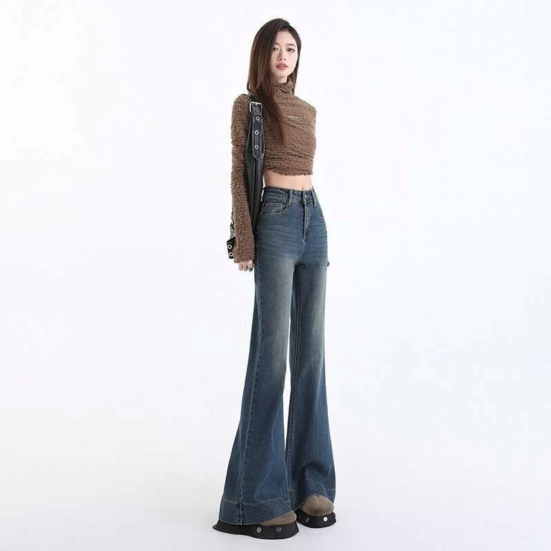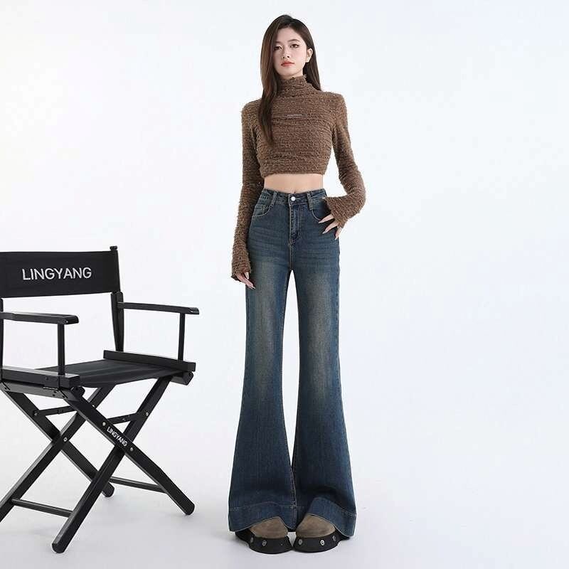 デニム レディース デニムパンツ フレアパンツ ベルボトム ジーンス ボトムス ロング丈 ブルーデニム きれいめ シンプル カジュアル 大人 おしゃれ レトロ 大人女子 春 夏 秋 冬 デート お出かけ 休日 アウトドア 旅行 普段使い 韓国系 スタイル 送料無料 XS S M L XL 2XL ブルー