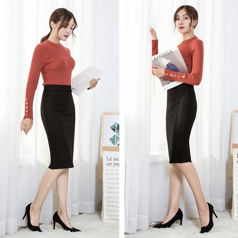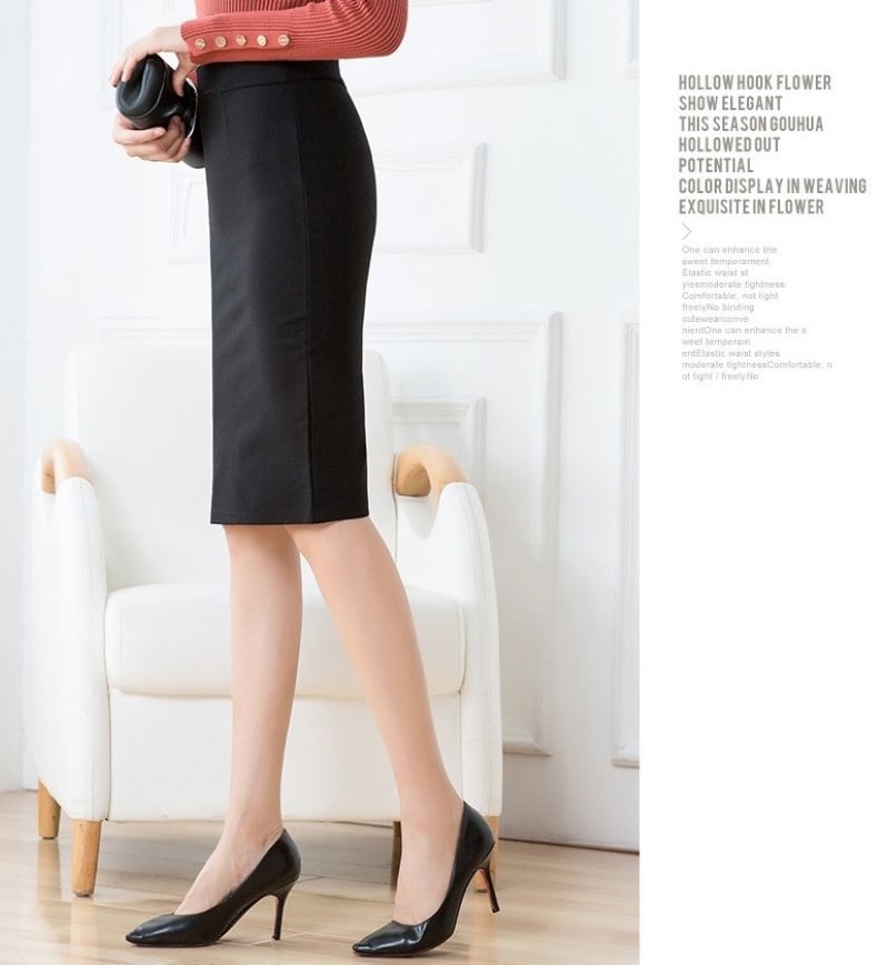 こちらのスカートは、ハイウエストデザインとウエストゴム仕様により、快適な着心地を実現。バックスリットがより一層の動きやすさを与え、ビジネスシーンから休日のカジュアルなコーデまで幅広く活躍します。ストレッチ素材で、身体にフィットしながらも優れた伸縮性を持っているため、動きやすさもバッチリです。ひざ丈のデザインは、上品でありながら、美脚効果もあり、どんなトップスとも組み合わせやすく、コーディネートの幅が広がります。
