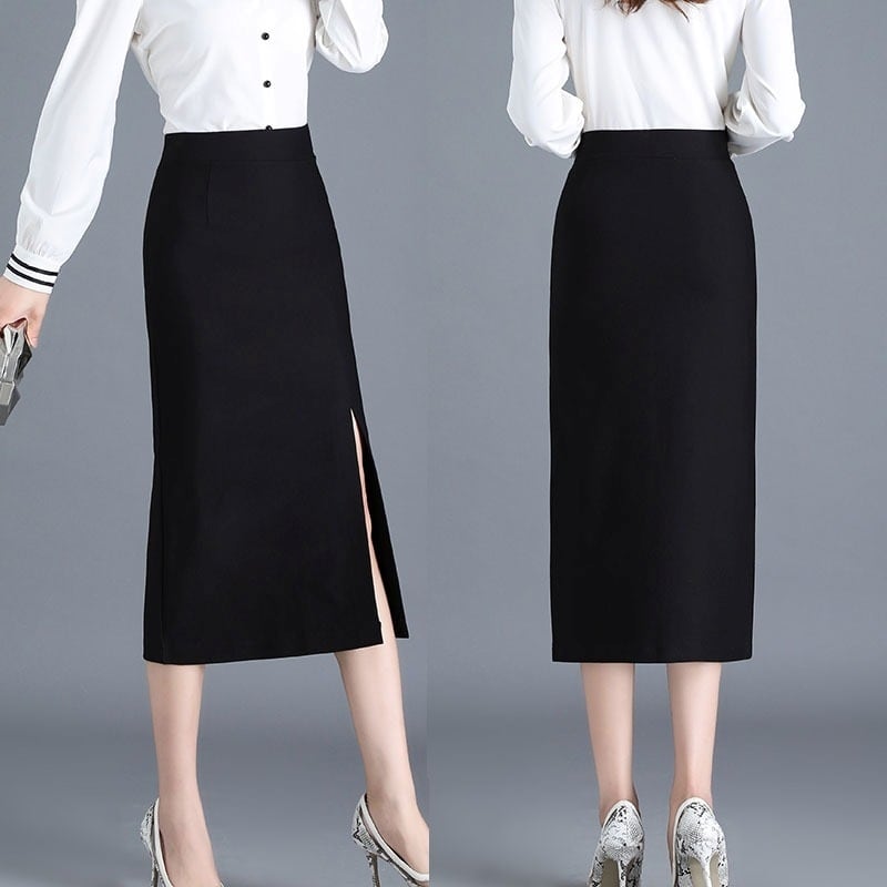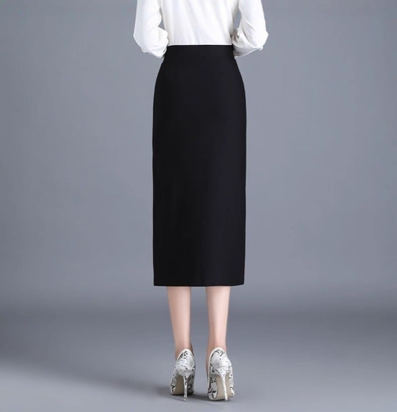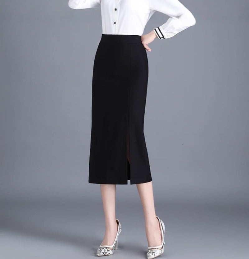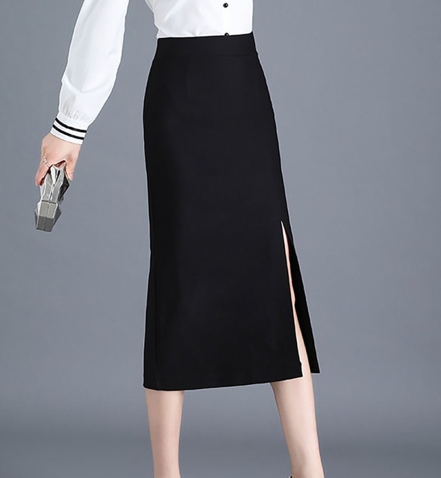 スカート レディース タイトスカート ロング ミモレ丈 ボトムス 膝下 サイドスリット ハイウエスト ウエストゴム 伸縮性 きれいめ シンプル 大人 上品 おしゃれ 大人女子 エレガント 無地 春 秋 通勤 デート お出かけ 休日 旅行 普段使い 定番 送料無料 S M L XL 2XL 3XL ブラック
