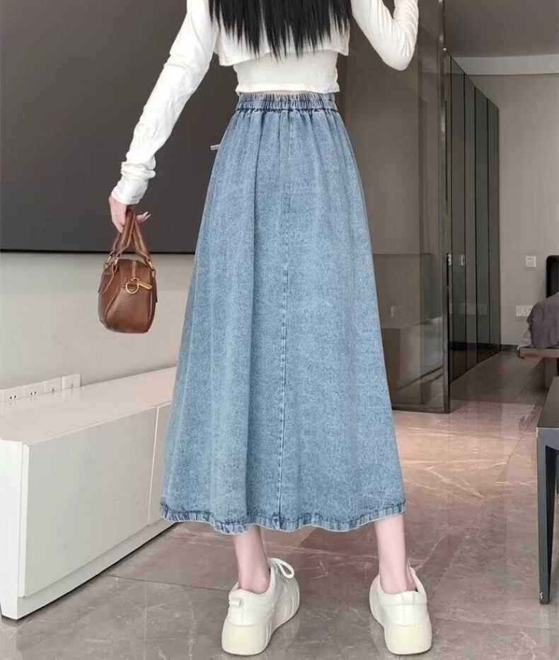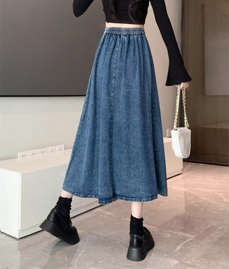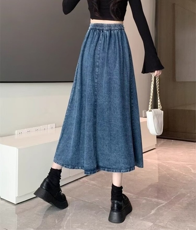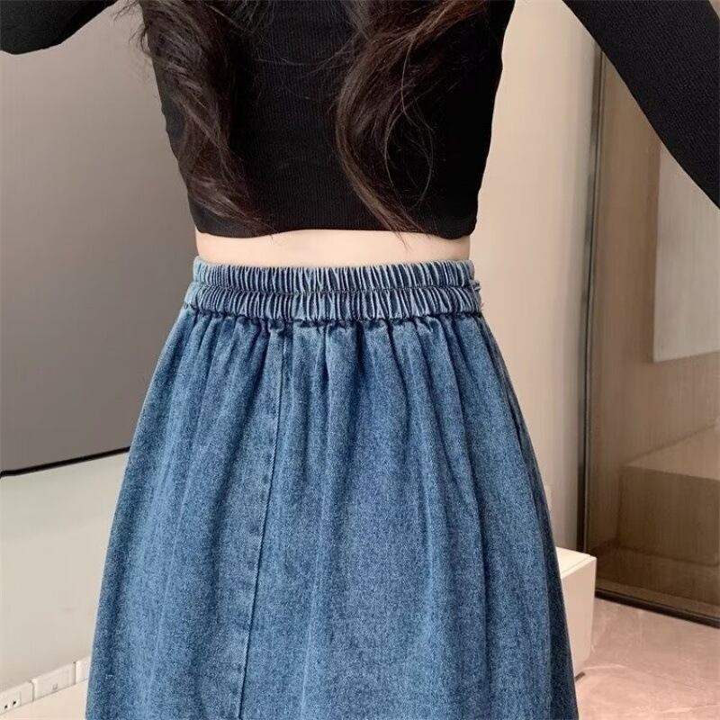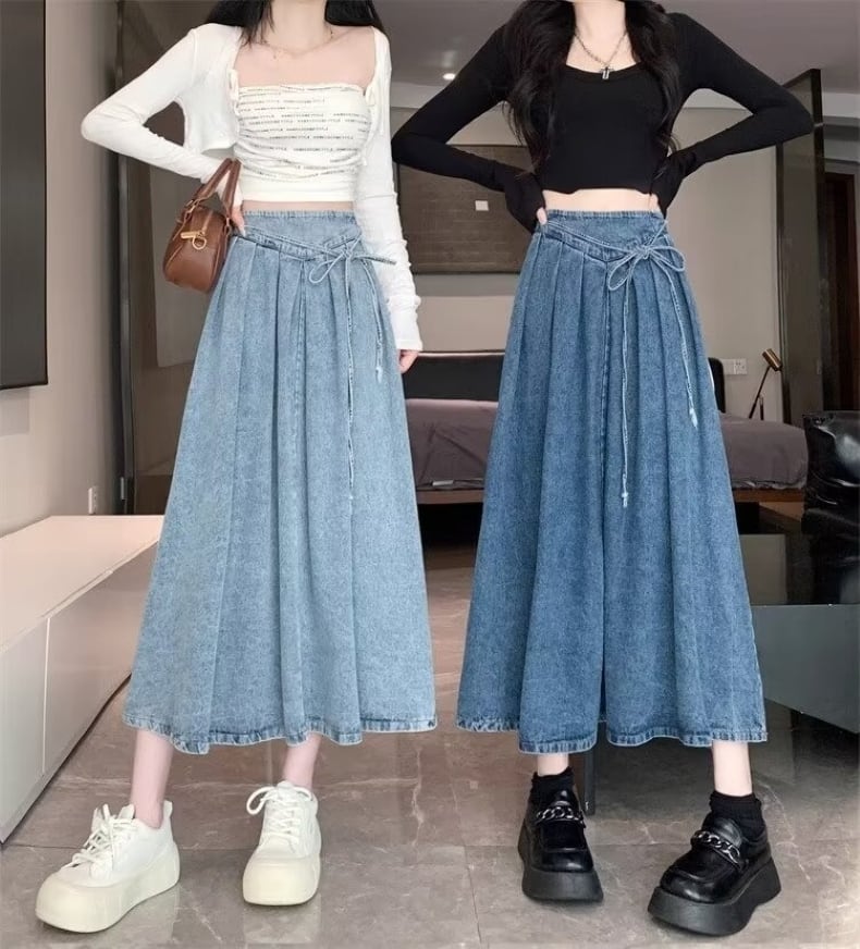 スカート ロングスカート レディース デニムスカート ロング プリーツスカート フレア Aライン ウエストリボン ハイウエスト ウエストゴム シンプル 大人 おしゃれ レトロ 大人可愛い 大人女子 とろみ感 春 夏 デート お出かけ 休日 アウトドア 旅行 普段使い 楽ちん 体系カバー 定番 送料無料 S M L XL 2XL 3XL ブルー ライトブルー
