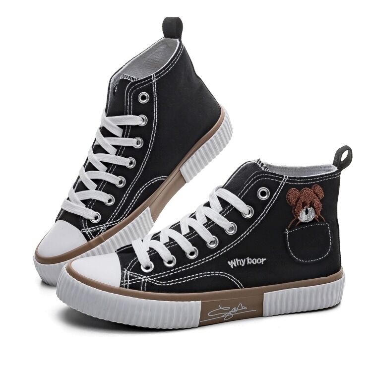 スニーカー レディース ハイカットスニーカー くま キャンバススニーカー レディースシューズ 歩きやすい 走れる 疲れにくい 大人可愛い 大人 おしゃれ 女っぽ 存在感 春 秋 冬 デート お出かけ 休日 旅行 普段使い 送料無料 22.5cm 23.0cm 23.5cm 24.0cm 24.5cm 25.0cm ホワイト ブラック