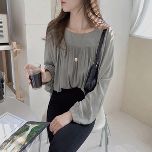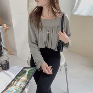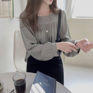ブラウス レディース シャツ トップス シフォンブラウス 長袖 パフスリーブ スクエアネック きれいめ 大人 おしゃれ 大人女子 エレガント 存在感 フォーマル 春 秋 デート お出かけ 休日 旅行 普段使い 体系カバー 送料無料 S M L XL ゆったり サイズ グレー ベージュ