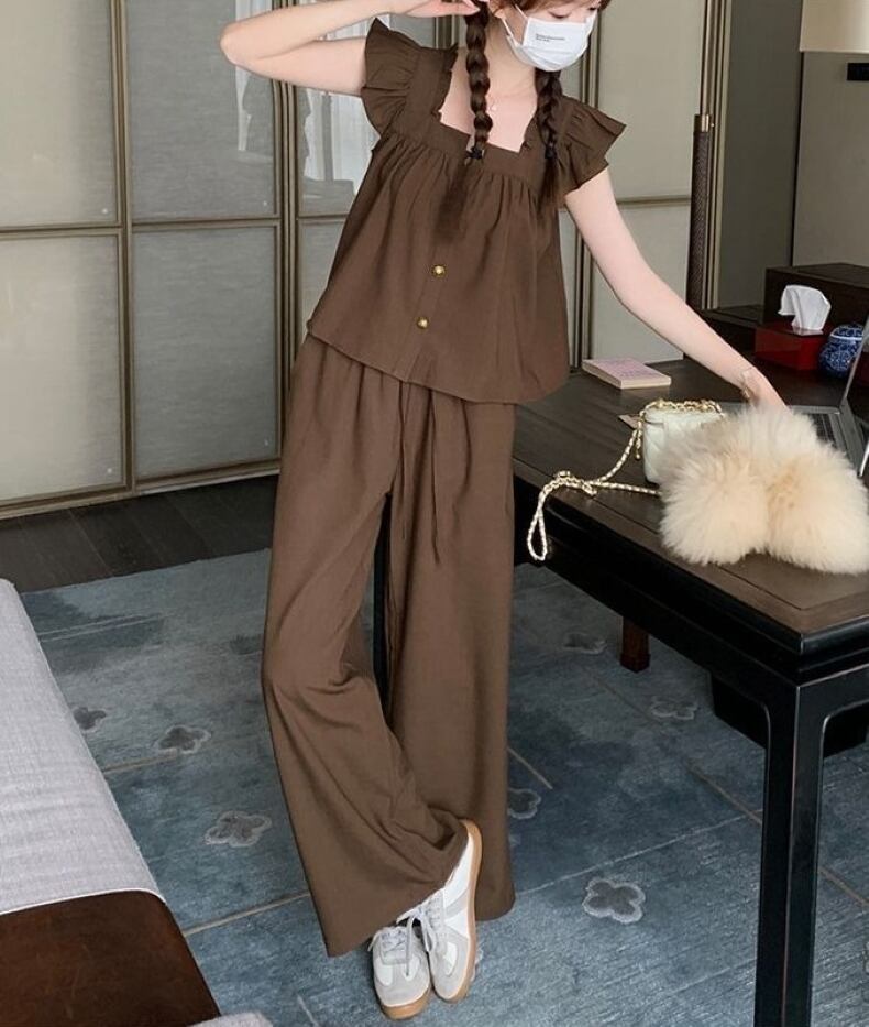 セットアップ レディース ノースリーブトップス ワイドパンツ ラッフルスリーブ スクエアネック ワイド リボン 上下セット きれいめ 大人 おしゃれ 大人可愛い 大人女子 春 夏 デート 休日 アウトドア イベント リゾート 旅行 海 普段使い 韓国系 スタイル 送料無料 S M L XL 2XL 3XL 4XL ブラック コーヒー