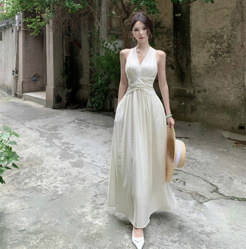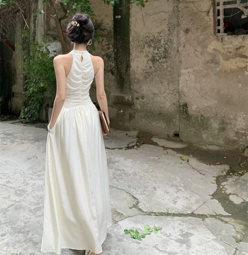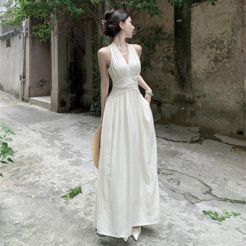 ワンピース ワンピースドレス レディース リゾートワンピース ホルターネック マキシワンピ ノースリーブ ロングワンピース きれいめ 大人 お洒落 大人女子 エレガント 無地 休日 パーティー イベント リゾート 旅行 海 送料無料 春 夏 S M L XL 2XL ブラック オフホワイト