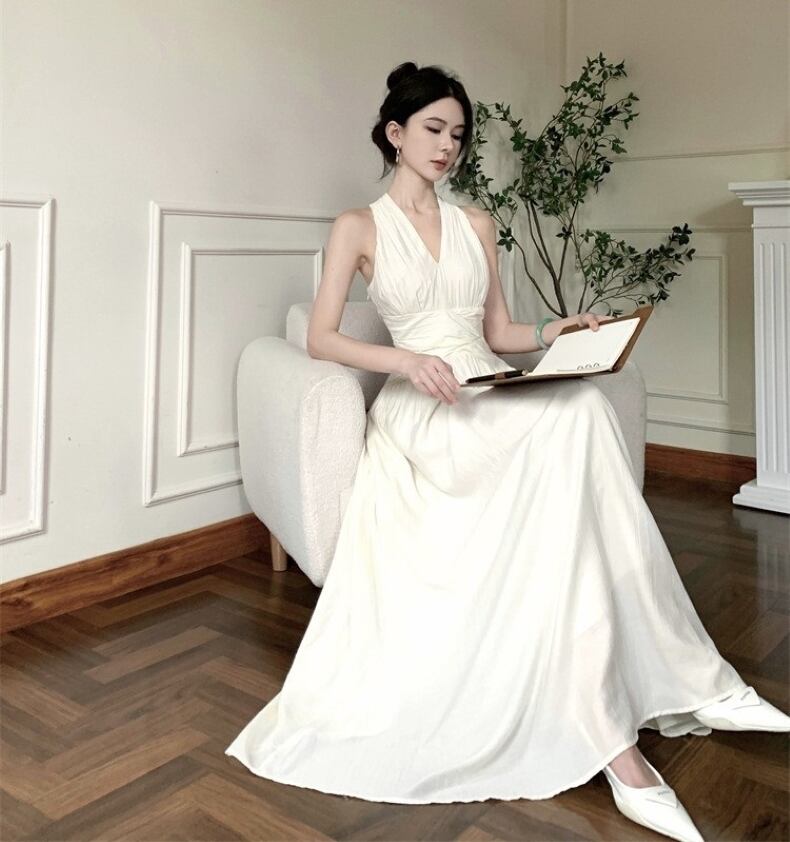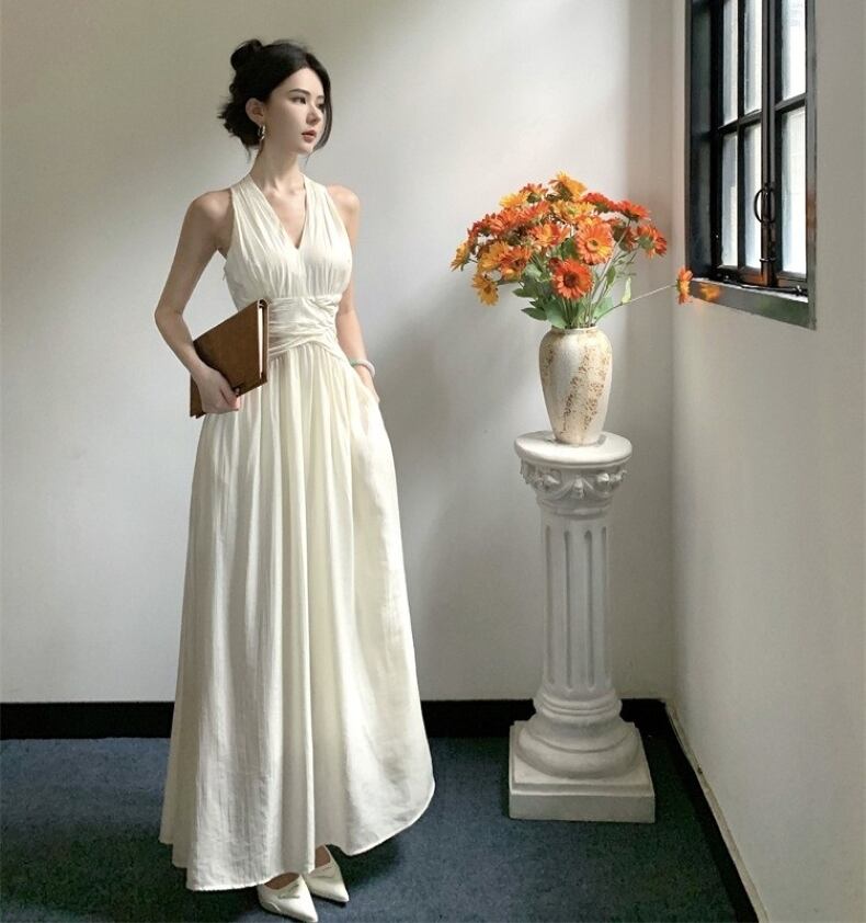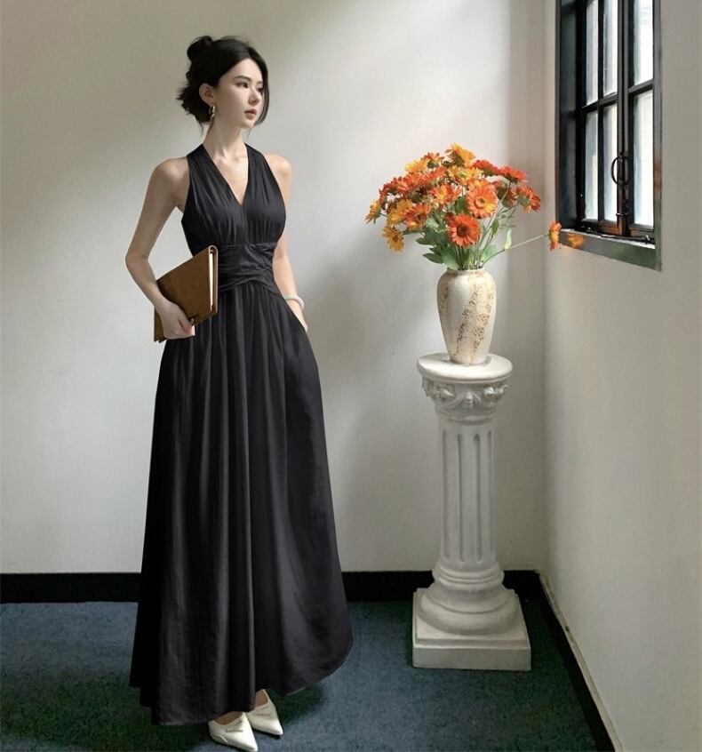 こちらのマキシワンピースは、軽やかな素材を使用し、快適な着心地を実現しています。ホルターネックデザインが首元を美しく引き立て、ノースリーブのスタイルが女性らしさを強調します。無地デザインは、春・夏のリゾートやパーティー、休日のお出かけにもぴったり!シンプルながらもお洒落な雰囲気で、コーディネートの幅を広げてくれるエッセンスを加えています。
