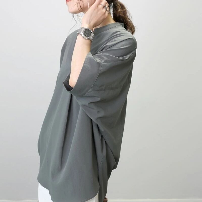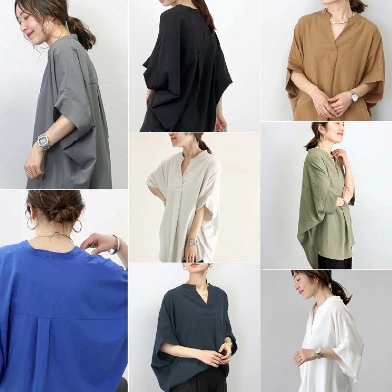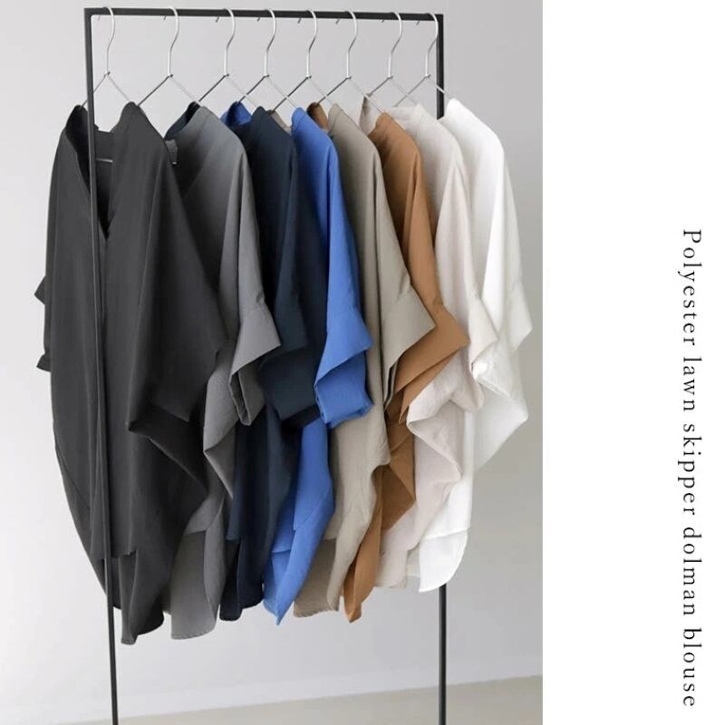 こちらのドルマンブラウスは、柔らかなシフォン素材を使用し、心地よいとろみ感を実現しています。Vネックのデザインが首元をスッキリ見せ、体系カバー効果も抜群です。春・夏のお出かけや休日のカジュアルスタイルにぴったり!フリーサイズでゆったりとしたシルエットが、リラックスした雰囲気を演出します。カラーバリエーションはホワイト、ブラック、ブルー、グリーン、グレー、ライトベージュ、コーヒーの7色展開で、どれもコーディネートしやすい色合いです。
