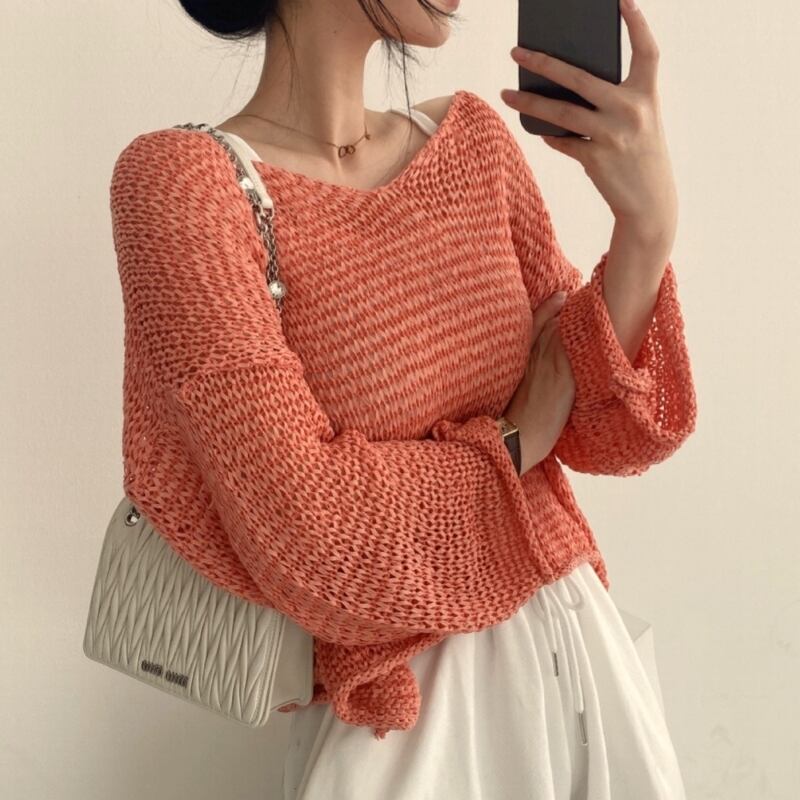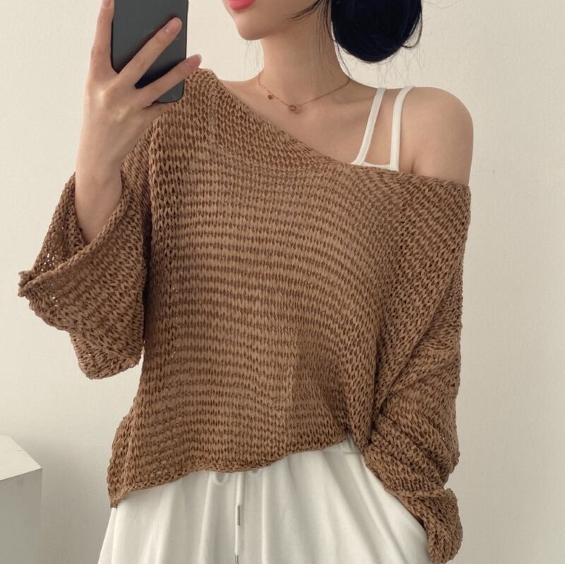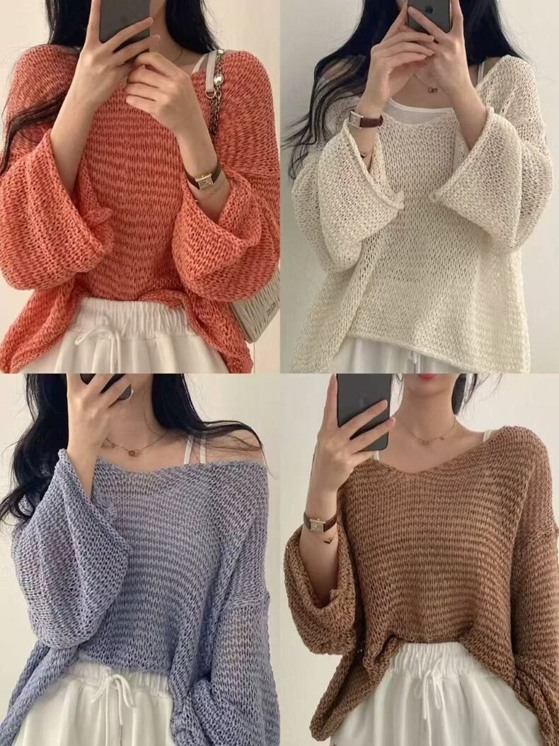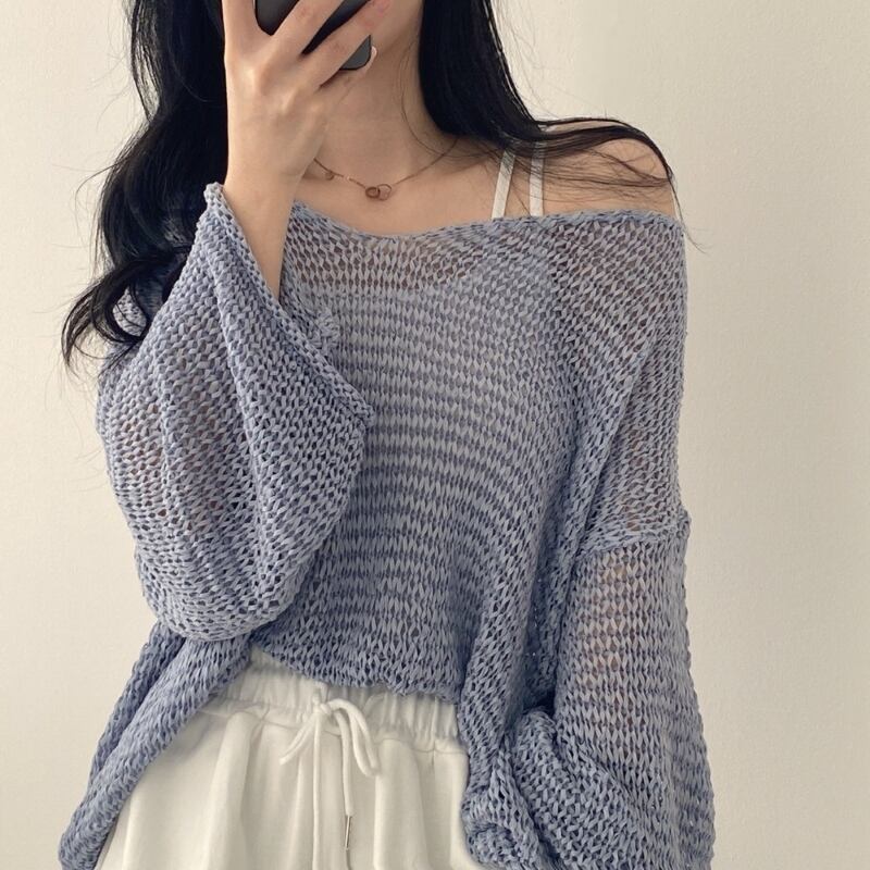 ニット セーター 透かし編み レディース トップス カーディガン プルオーバー 長袖 オフショルダー 透け感 サマーニット 薄手 シンプル カジュアル 大人 おしゃれ 大人女子 とろみ感 無地 春 夏 デート お出かけ 休日 旅行 海 普段使い 重ね着 韓国系 スタイル 楽ちん 体系カバー 送料無料 フリーサイズ ゆったり サイズ ブルー オレンジ コーヒー アイボリー