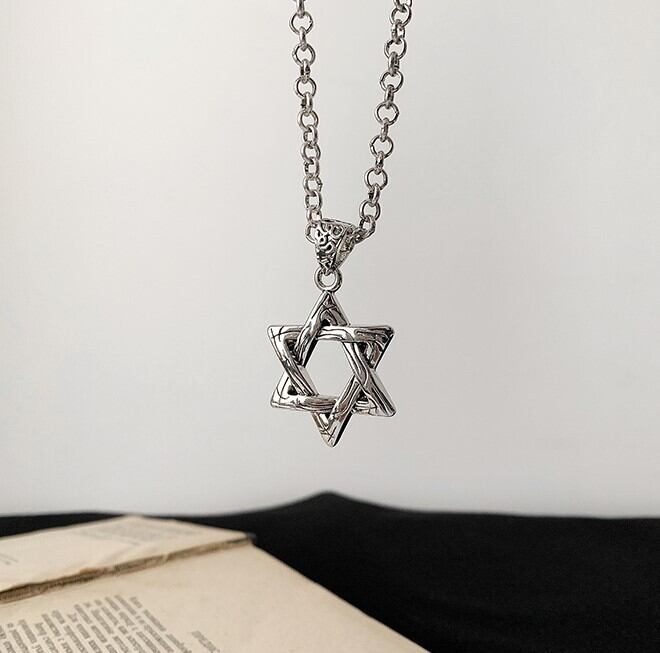 六芒星 レトロ ロング チェーン ネックレス シンプル カジュアル ラフ 10代 20代 30代 40代 レディース 学生 お出かけ 休日 イベント 旅行 普段使い 韓国系 ファッション スタイル 春 夏 秋 冬 2021 シルバー